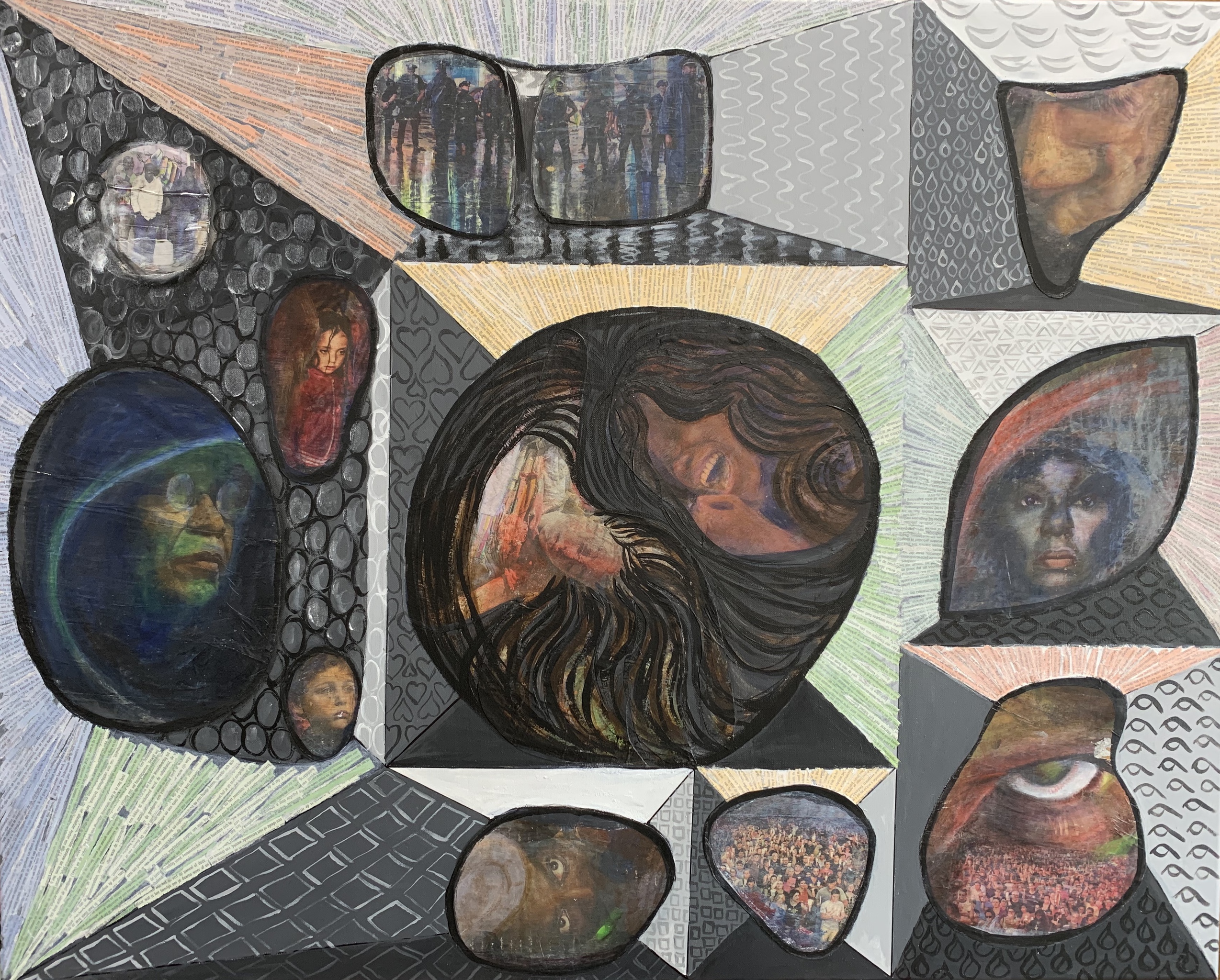 Papier Gemengde Techniek Oorlog Nieuws Vluchtelingen Onmacht Blacklivesmatter