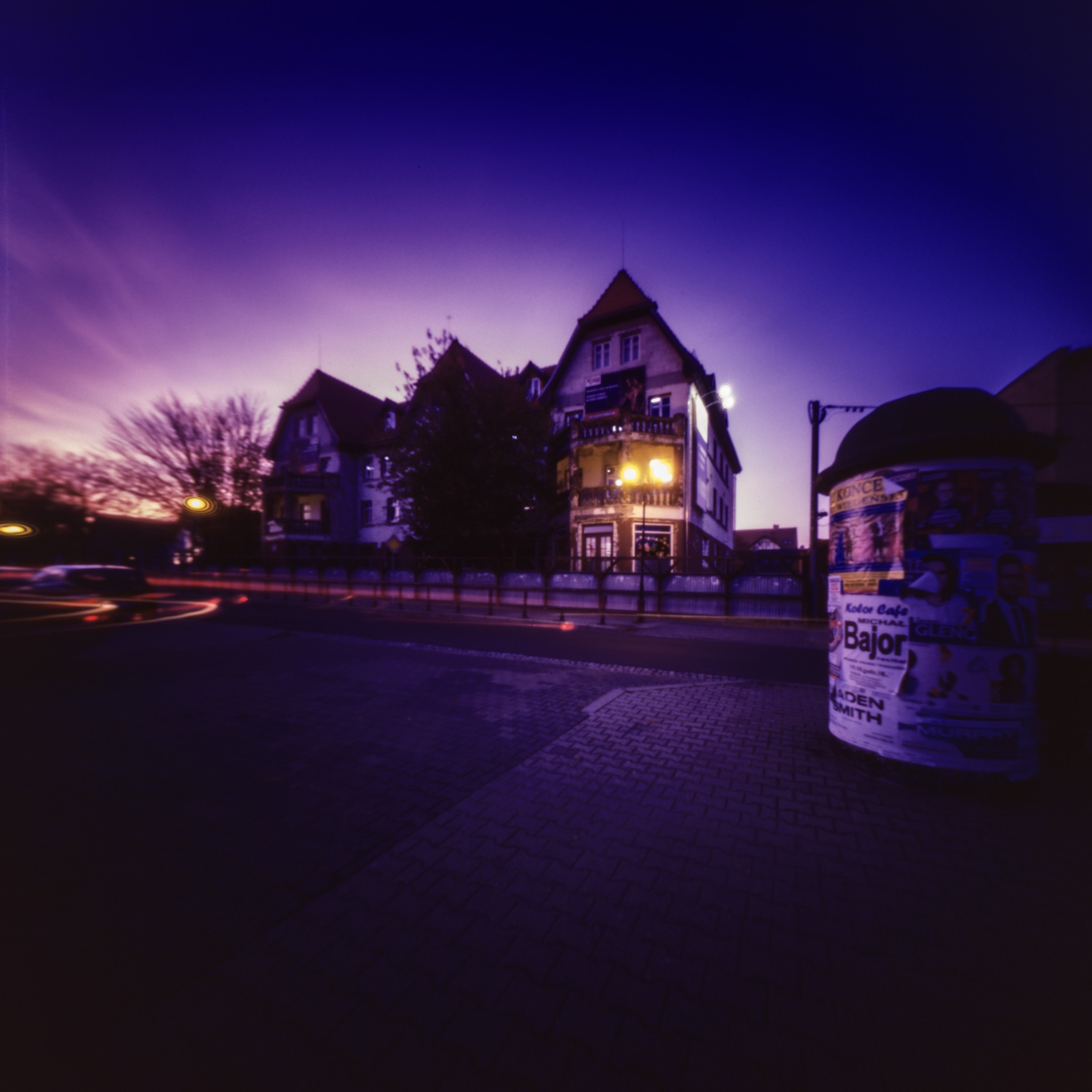 Analoge pinholefoto. Zonsondergang.