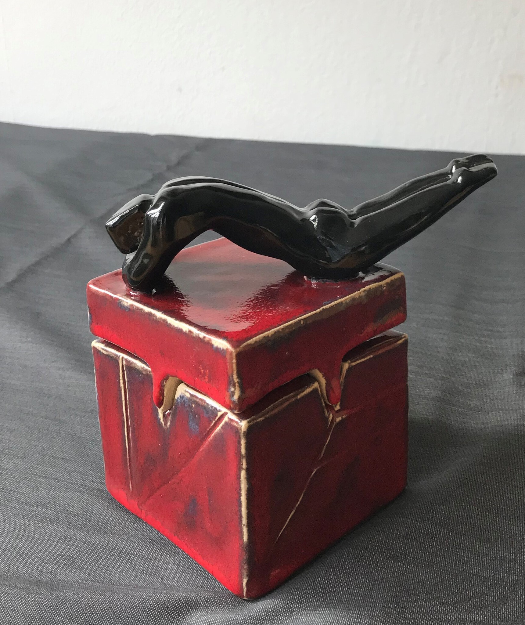 Man Art Nude Red Black Box Keramiek Ceramic Handmade Glaze Bisquit