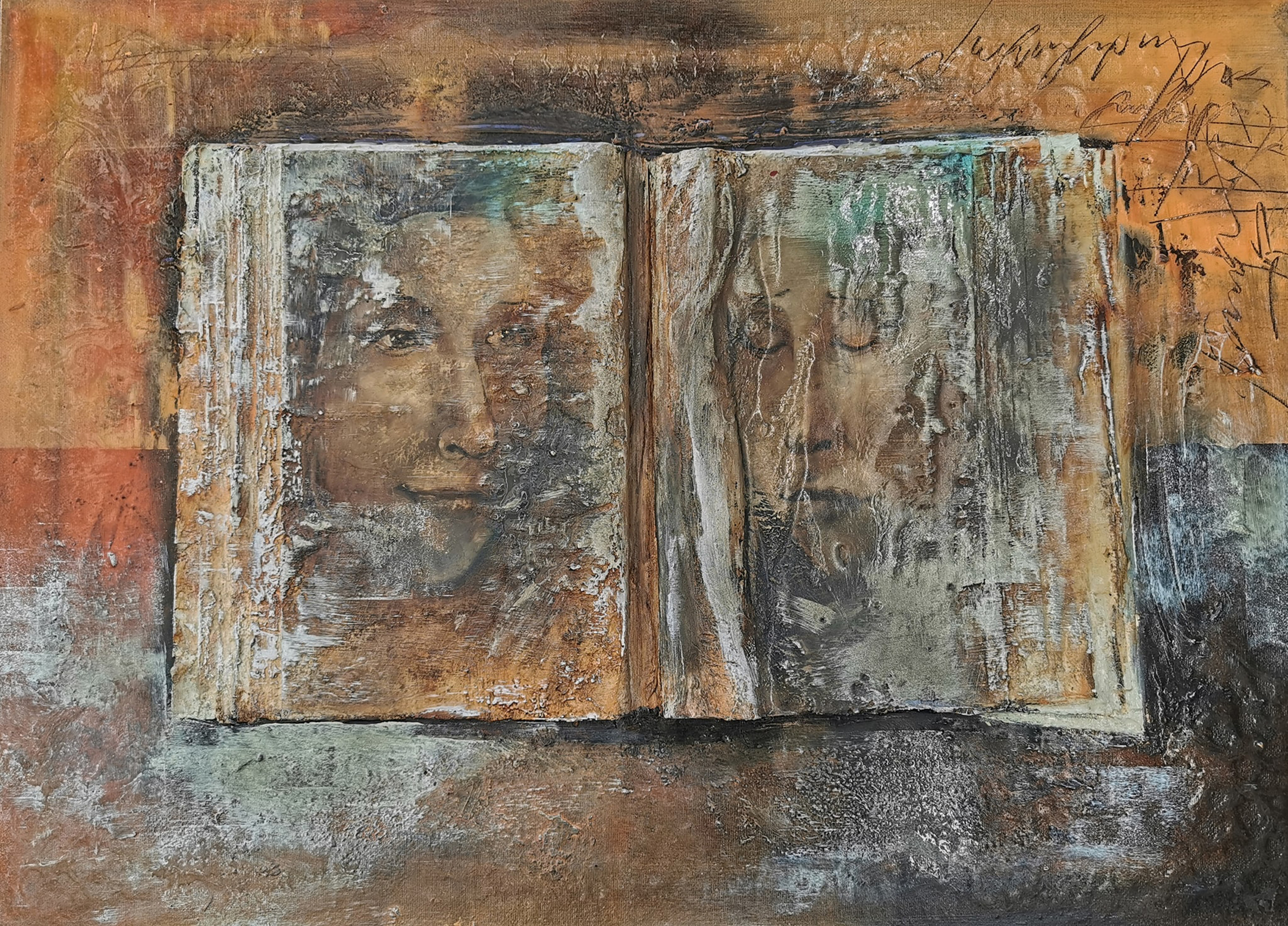 Abstracte en figuratieve schilderijen .Acrylverf op doek + deco- elementen.