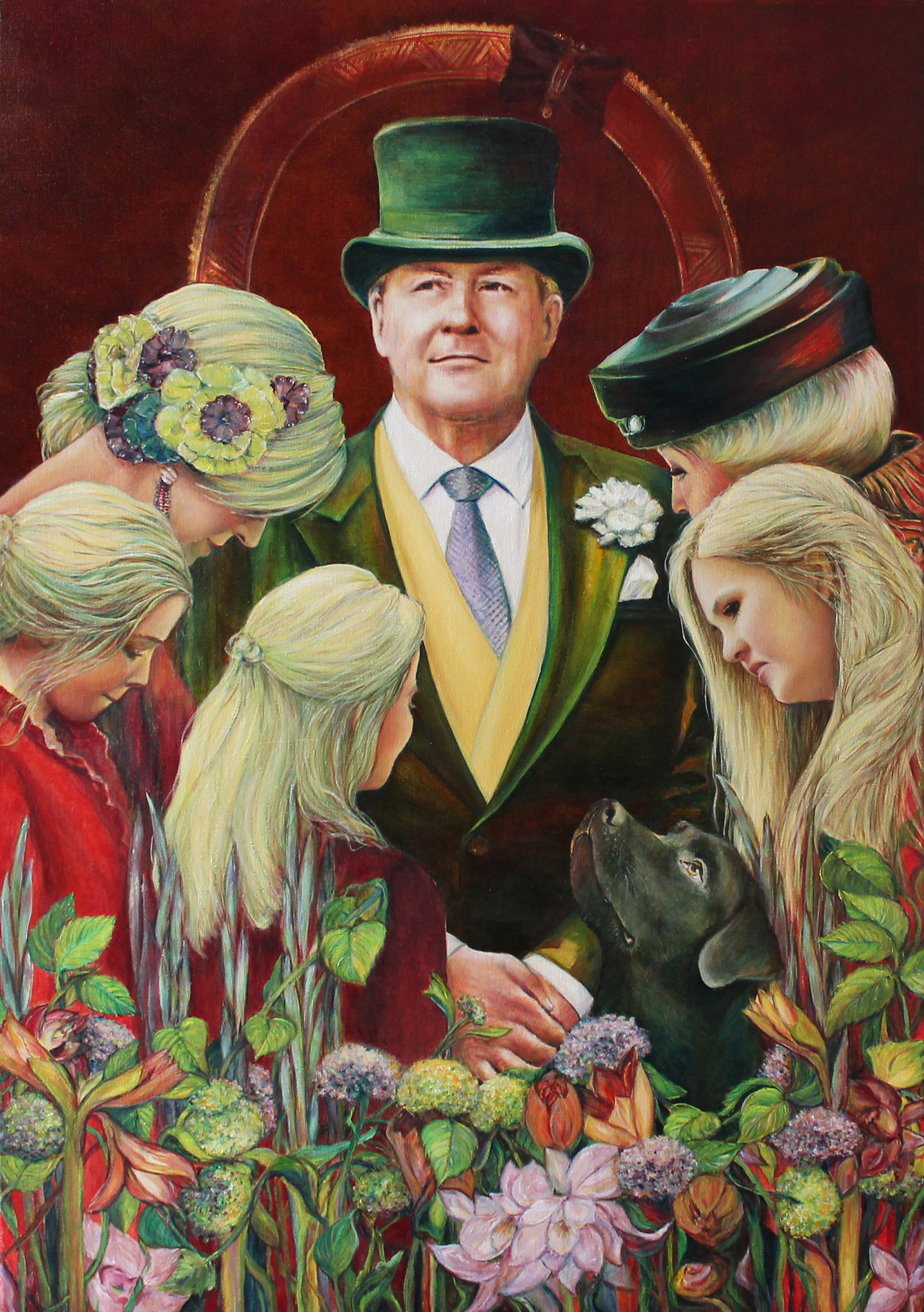Rood Groen Vrouw Man Realistisch Olieverf Koning Dochters Artvolova