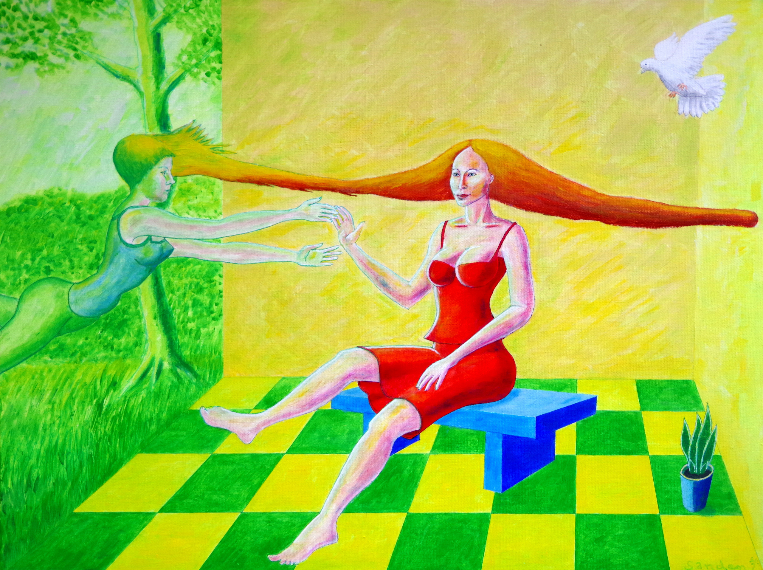 Acryl Groen Vrouw Kleurrijk Natuur Duif Nymph Boodschap Annunciatie Aanzegging Chloris