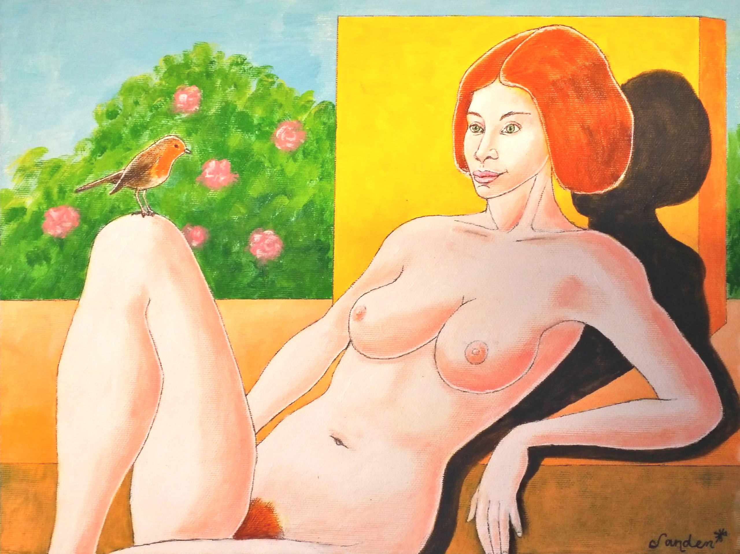 Vrouw Naakt Van Eenheid Kleur Roodborstje Deel Zingeving Camelia Uitmaken
