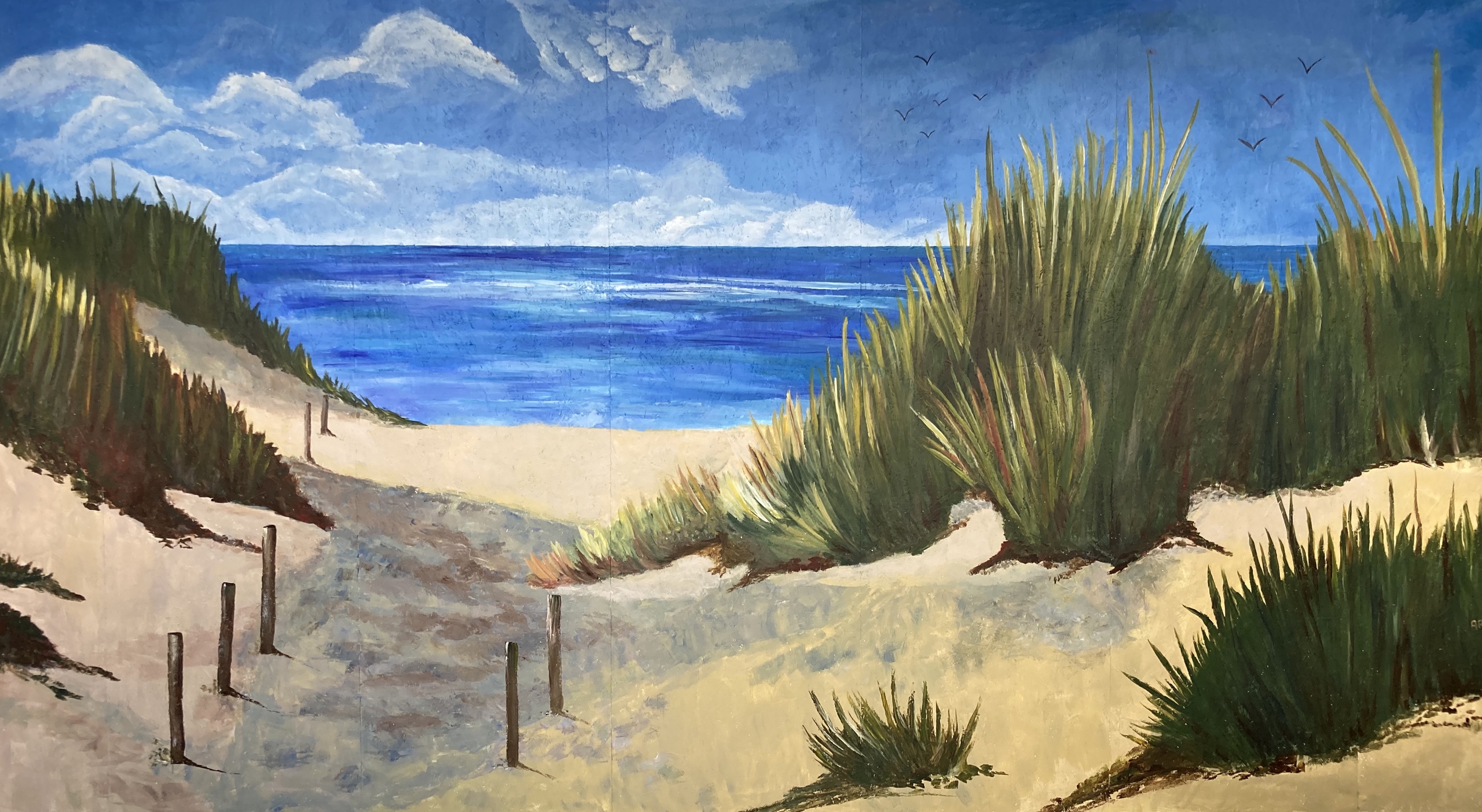 Een mooie strand overgang met helmgras en paaltjes, gemaakt in een stadstuin onder een overkapping ( in opdracht)