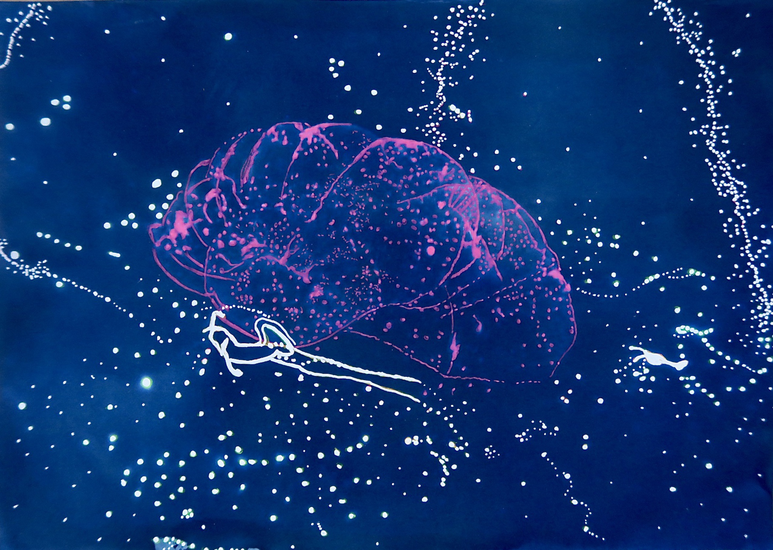 Blauw Met Kleur Zeebodem Cyanotypie Plasticsoep Manteldiertjes