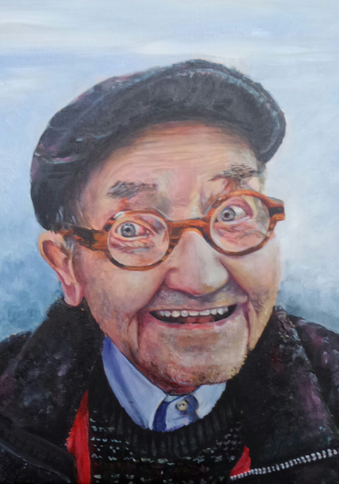 portret van de vader van Grietje, kadootje voor haar welverdiende pensioen . Hij is hier 97 jaar , maar gaat voor de 100...