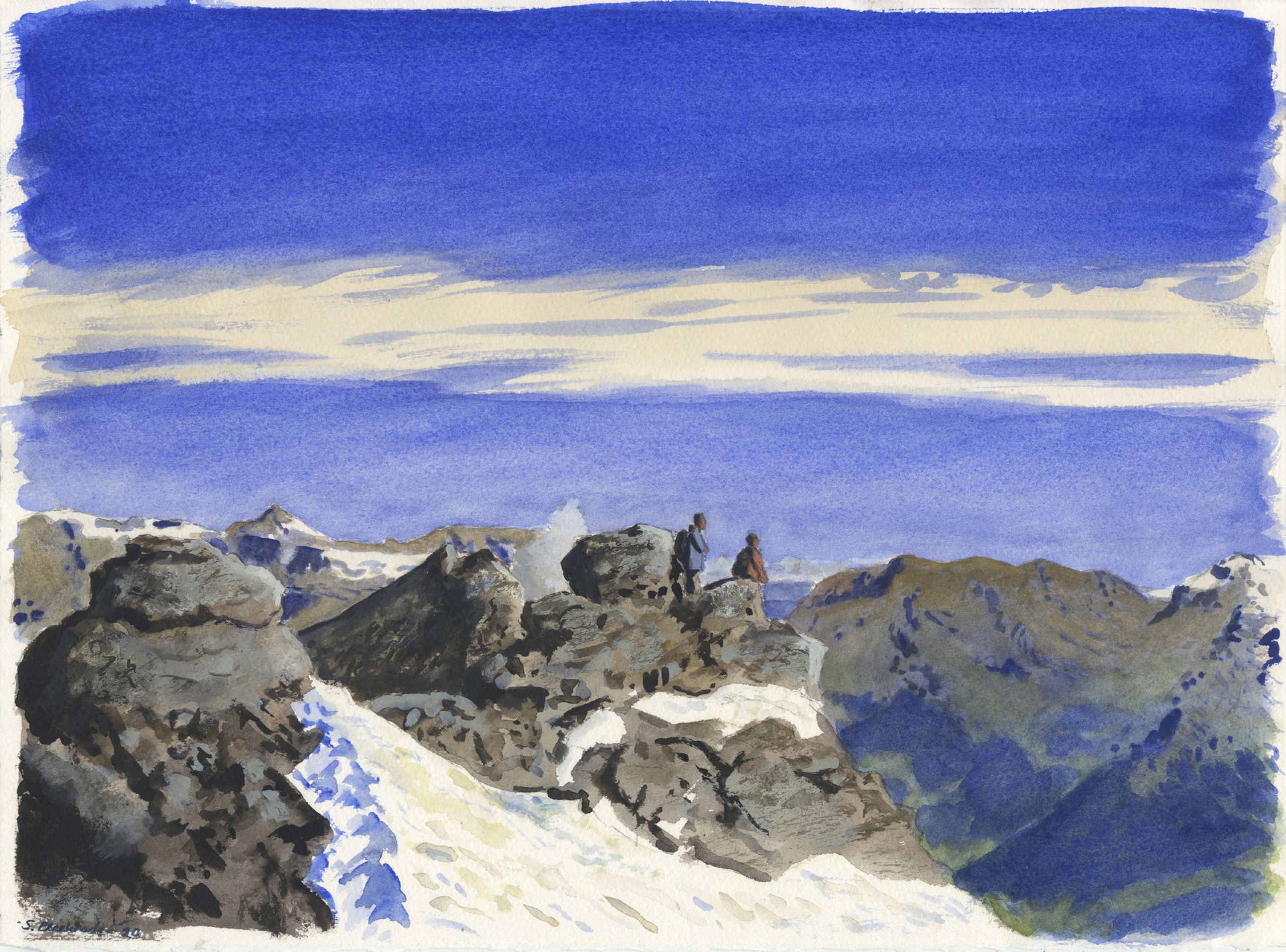 Deze aquarel is geschilderd op de top van de 3300 meter hoge Mont Fort in Val de Bagnes, Wallis.