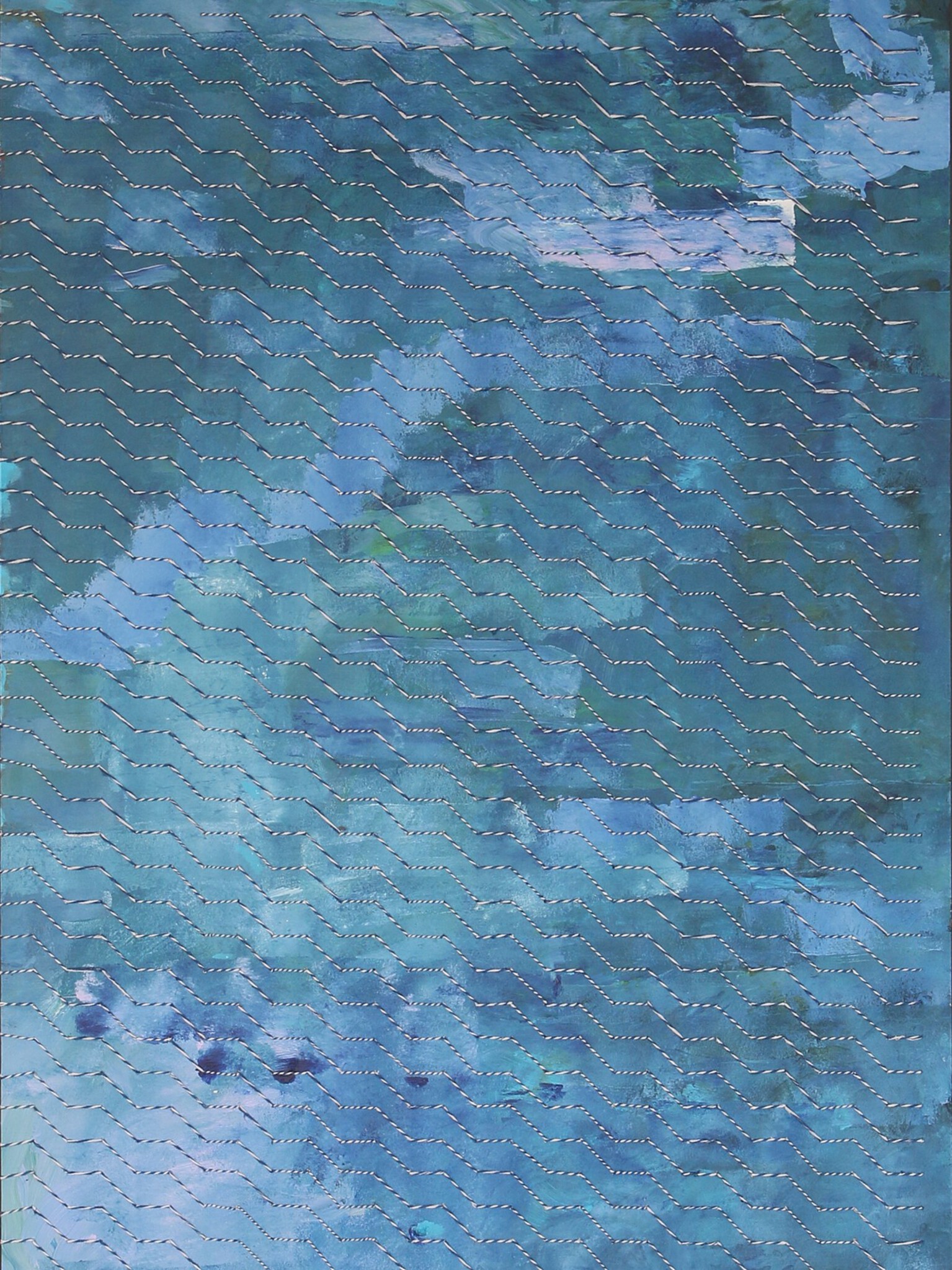 Met acryl beschilderd papier, geborduurd met vleesdraad