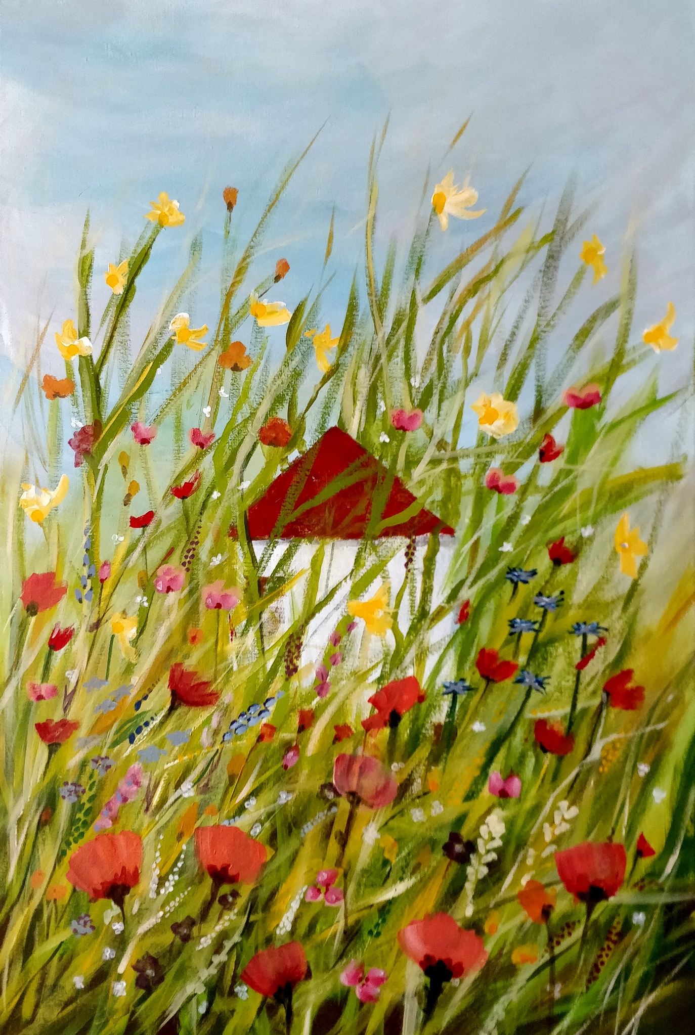 Summerfield/zomerveld geeft de uitbundigheid van de zomer aan in bloeiende velden, die zelfs hoger lijken te reiken dan de bewoonde wereld.