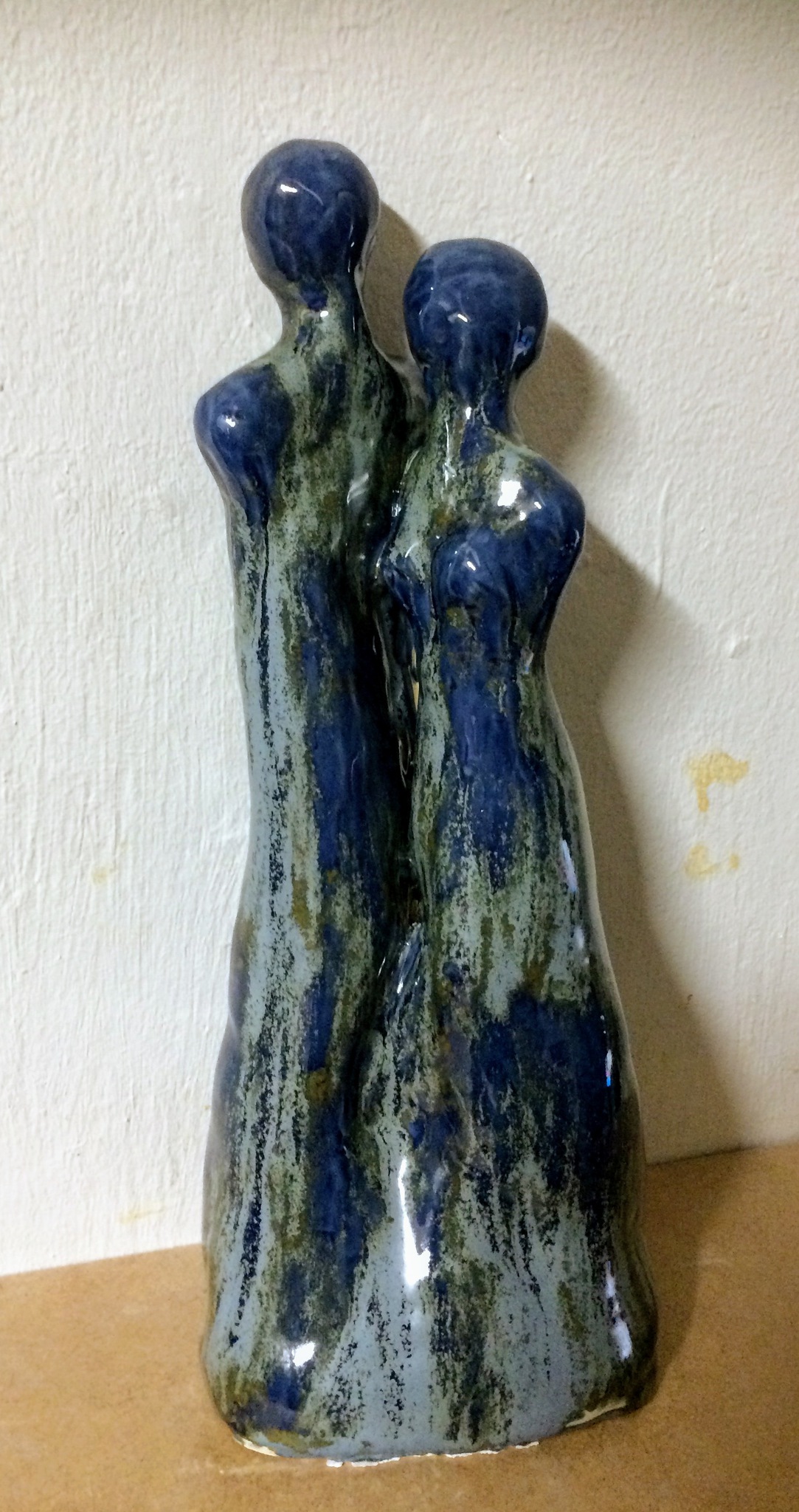Blauw Groen Beeld Keramiek Glazuur Paar