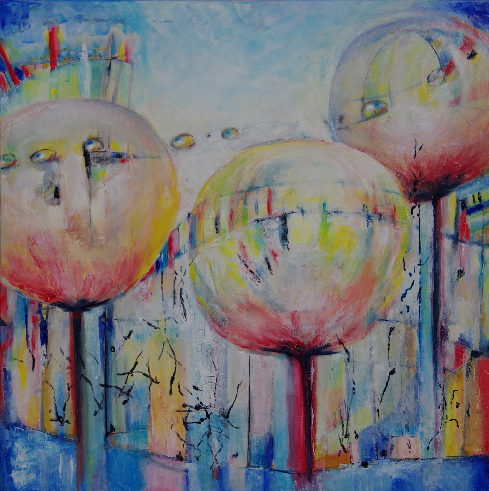 Waar ben je? Ik kom naar je toe...80x80 olieverf/mixed media, 3D