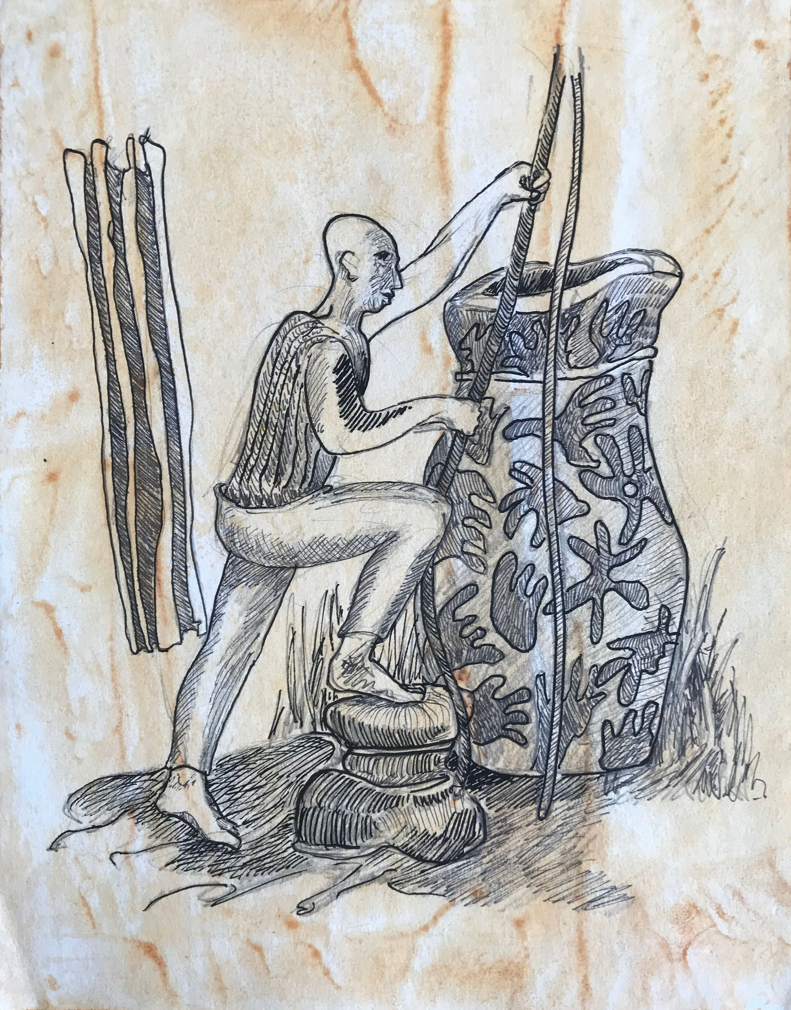 uit serie: JOURNAAL VAN NIET GEBEURDE ZAKEN, pentekeningen op geprepareerd papier, gescheurde randen
