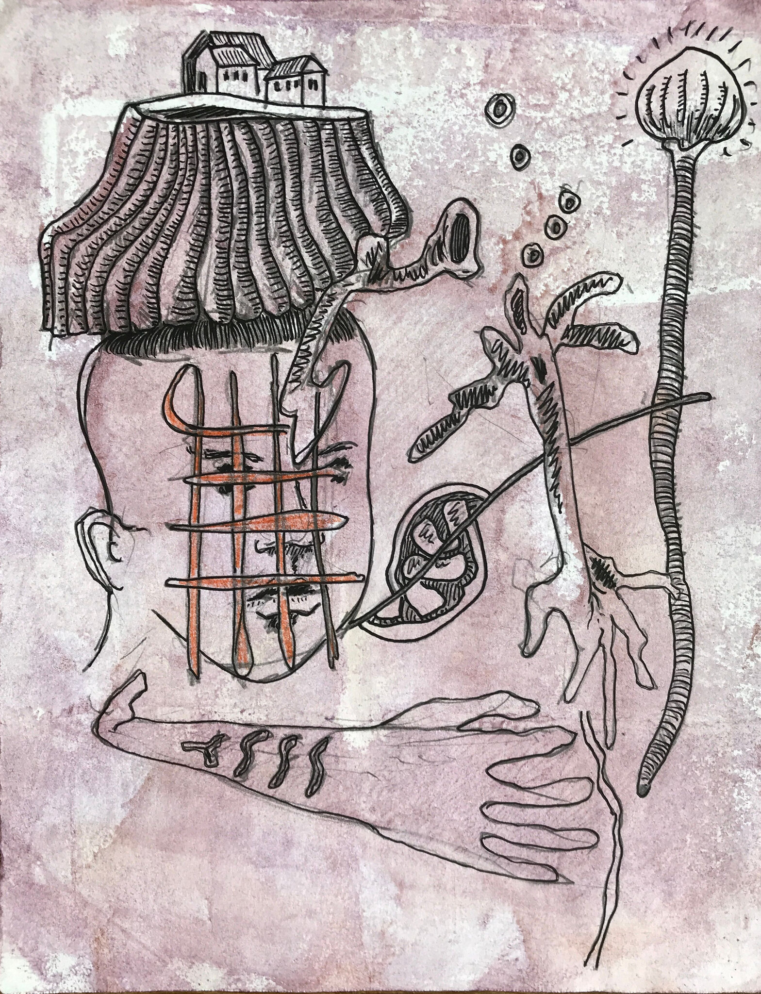 uit serie: JOURNAAL VAN NIET GEBEURDE ZAKEN, pentekeningen op geprepareerd papier, gescheurde randen