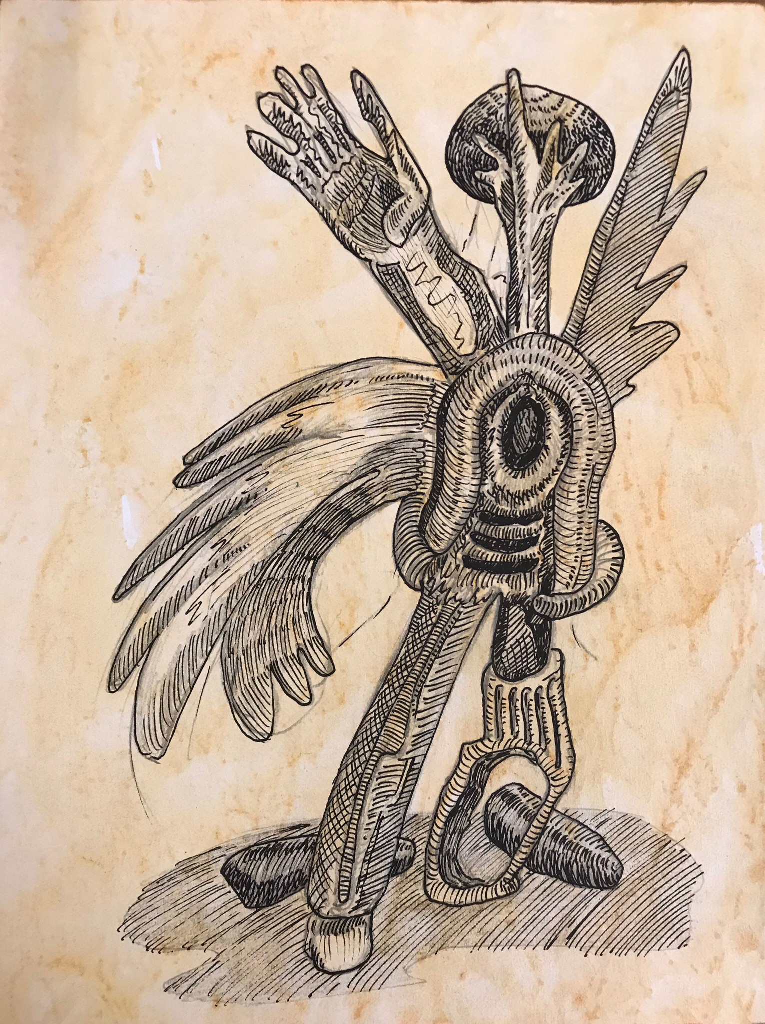 uit serie: JOURNAAL VAN NIET GEBEURDE ZAKEN, pentekeningen op geprepareerd papier, gescheurde randen