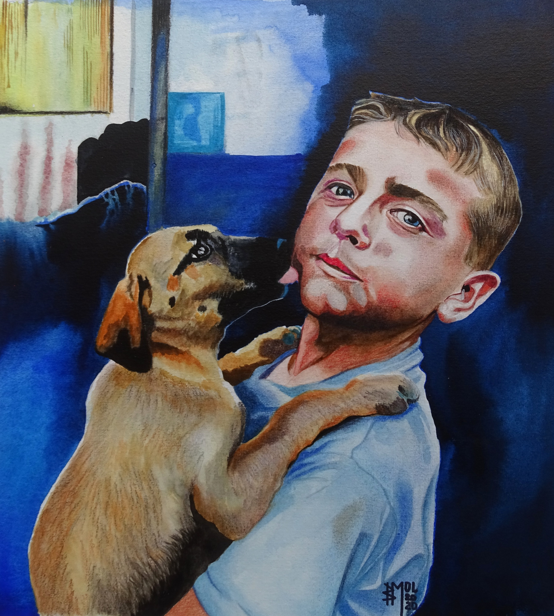 Kind Art Blue Aquarel Boy Dog Rotterdam Mixedmedia Kerst Queer Dutchartist Bastiaanmol Lgbt
