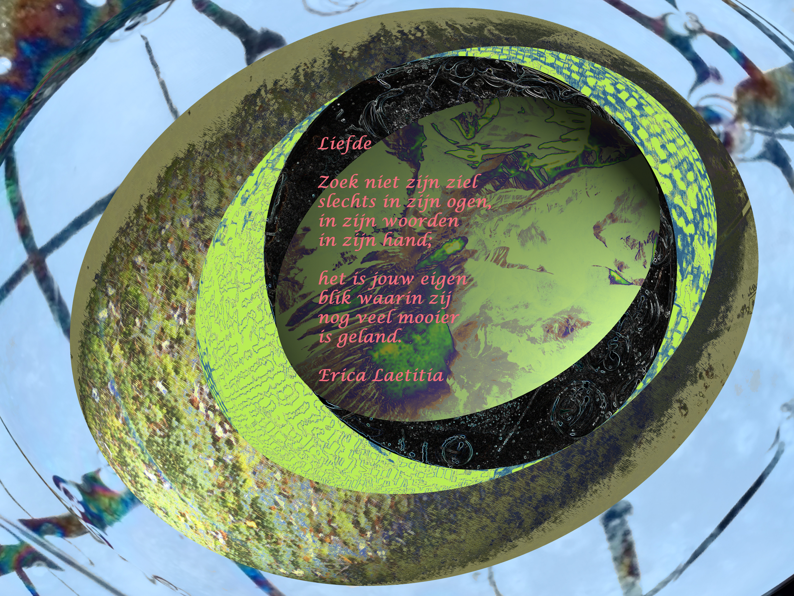 Dit zelfportret is een goede representant van mijn aluprints: diverse digitaal bewerkte foto-elementen die samen één verhaal vertellen, met of zonder gedicht.