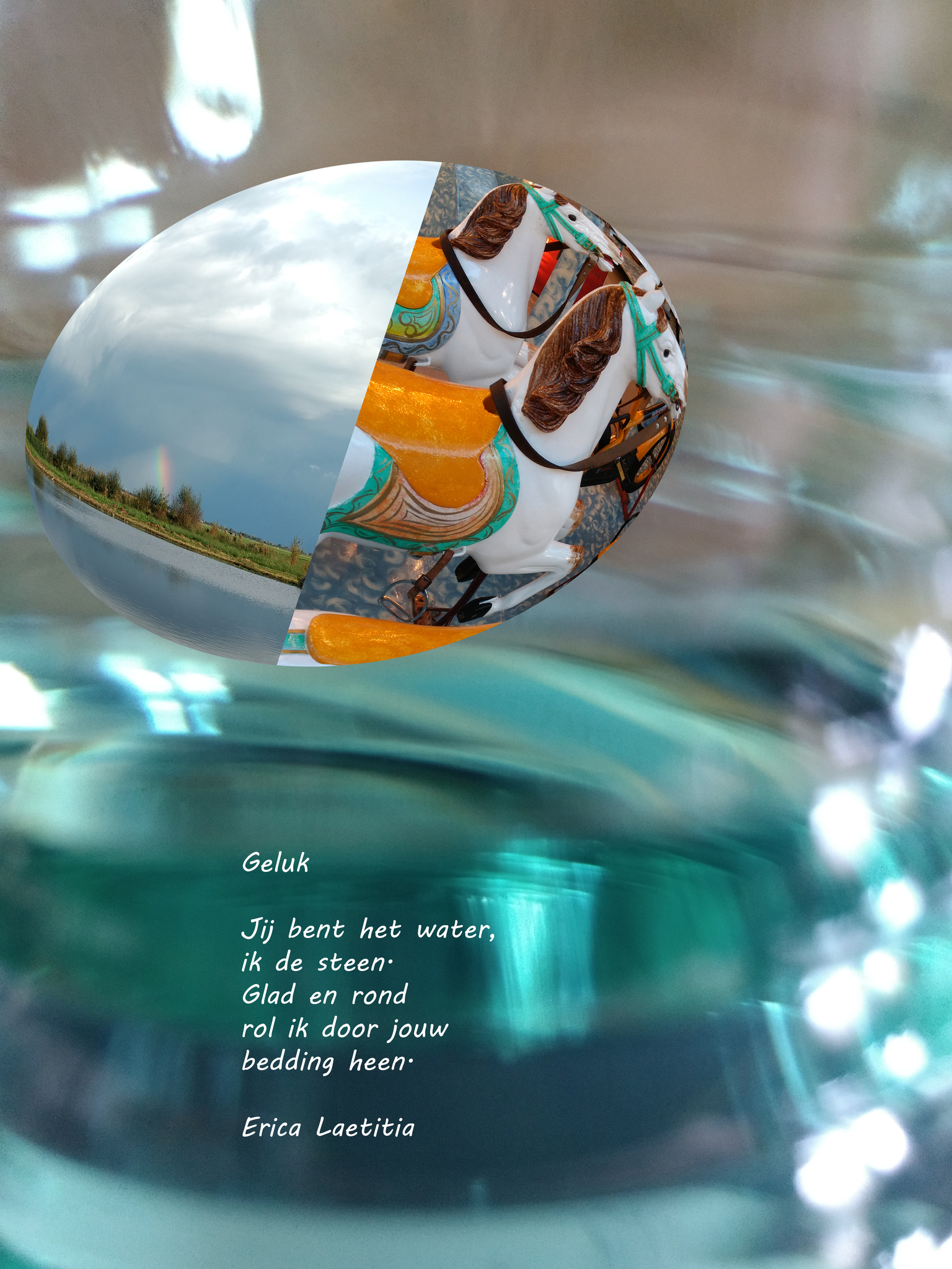 Dit zelfportret is een goede representant van mijn aluprints: diverse digitaal bewerkte foto-elementen die samen één verhaal vertellen, met of zonder gedicht.