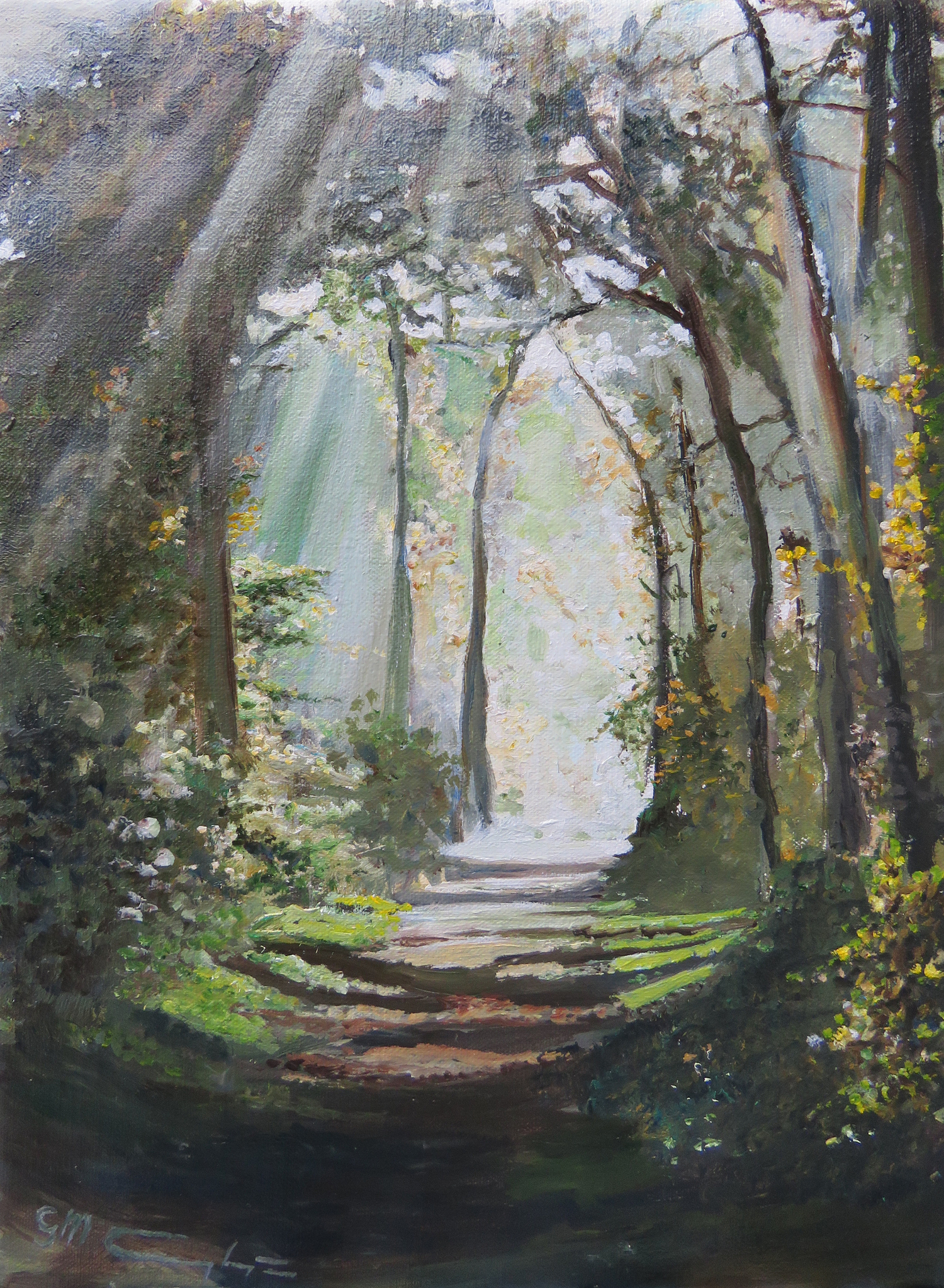 Licht en luchtig is mijn gevoel, wanneer ik op één van mijn ochtendwandelingen tussen de bomen loop en het licht langs de boomkruinen naar beneden zie kruipen.