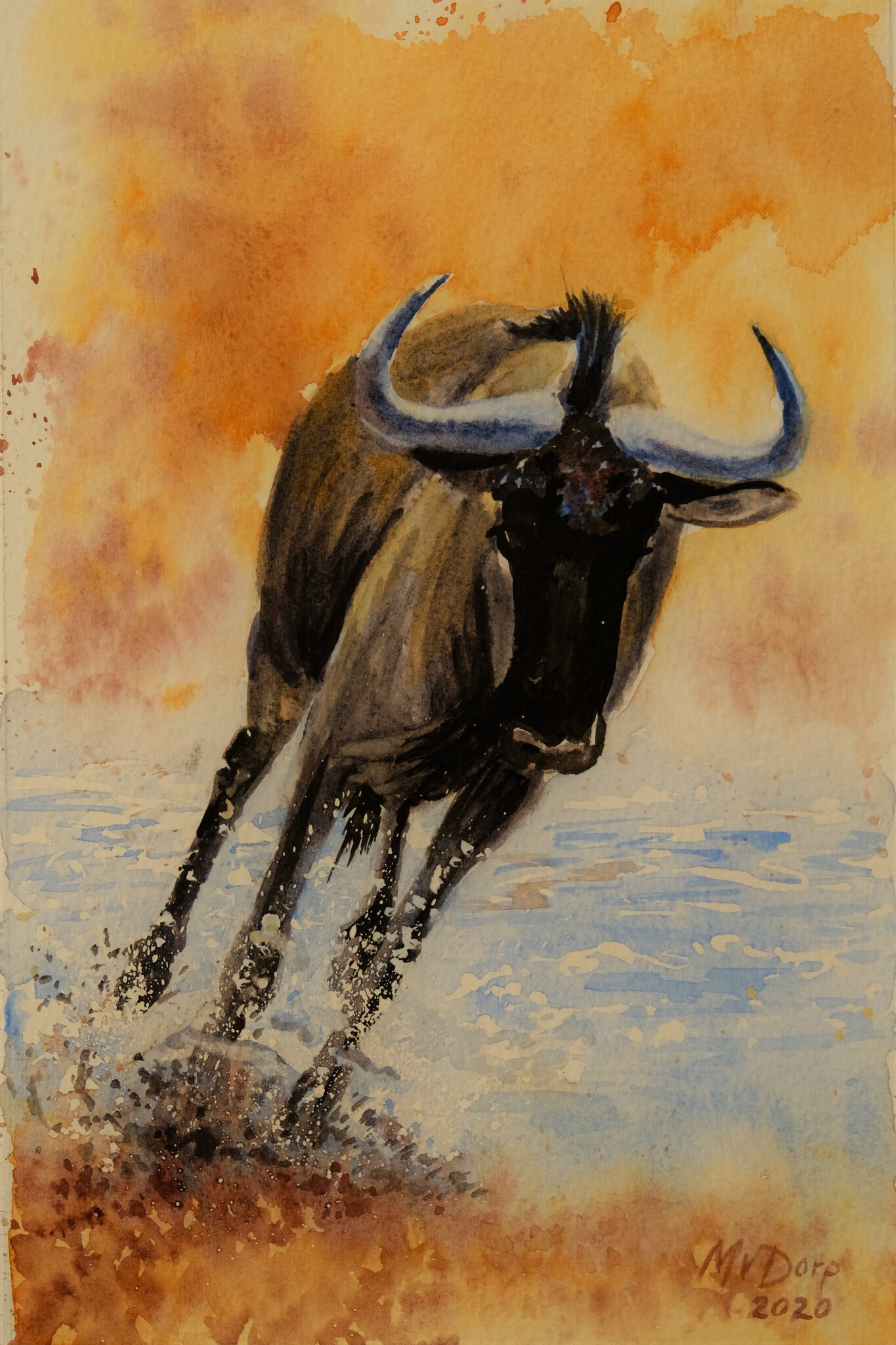 Aquarel Gnoe Namibië Wildebeest Etoshapark