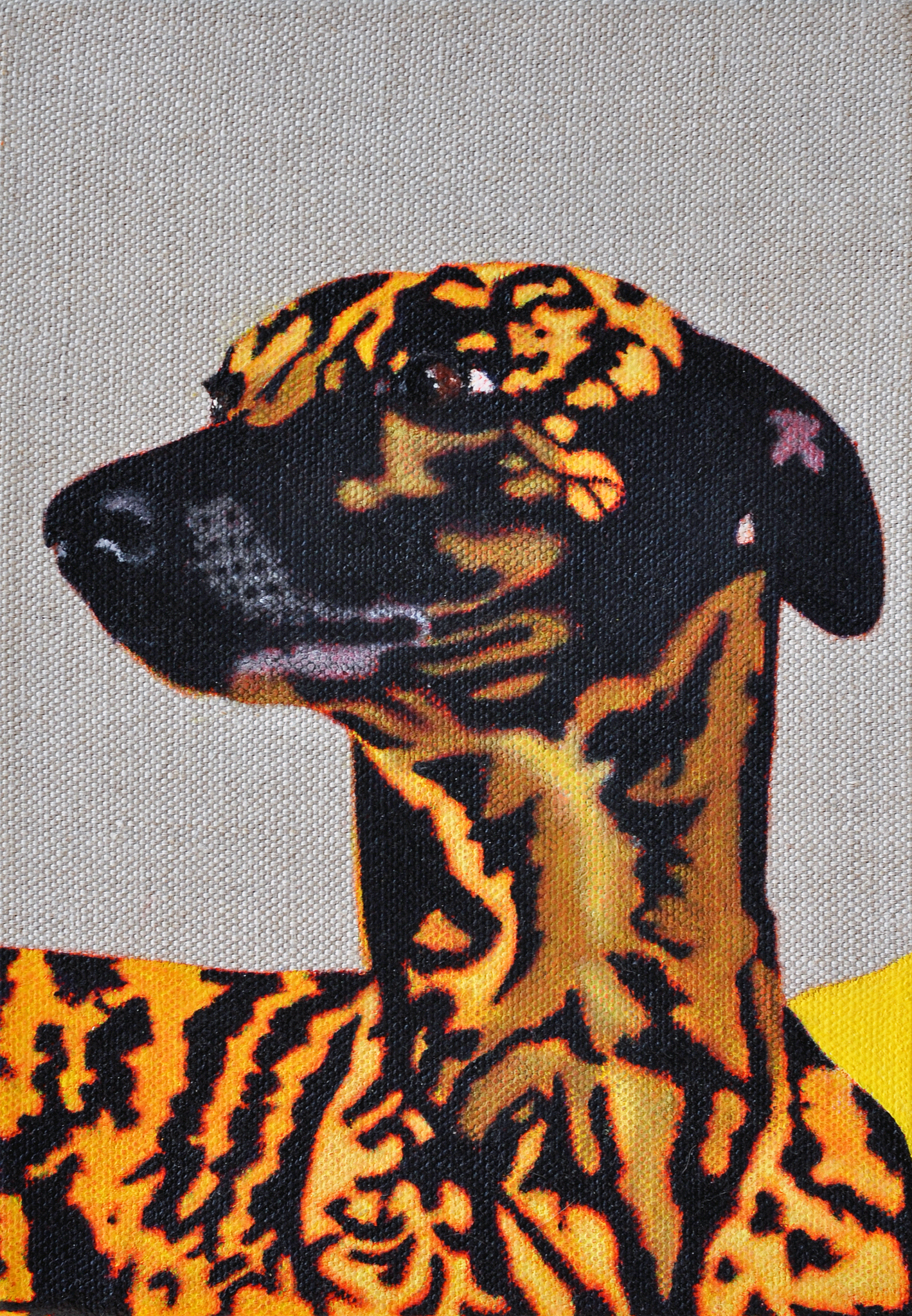Rood Oranje Geel Zwart Blauw Blik Hond Surreëel Linnen Kijken Beeldspraak Windhond Zijkant Belangrijk ! Rechthoek Whippet Beeldtaal Ernstig