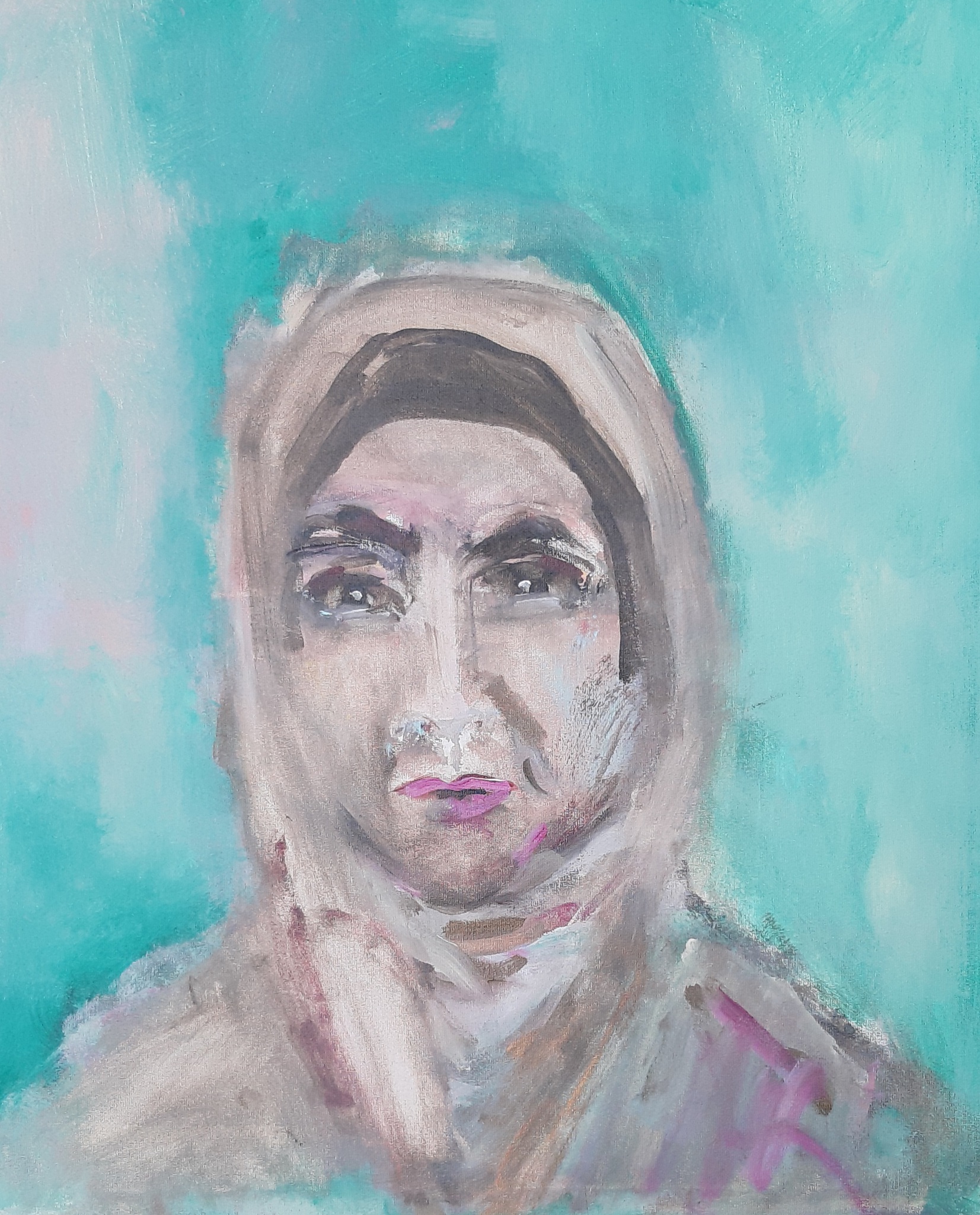 Portret van Syrische bezoeker community art project pennywafelhuis in Middelburg