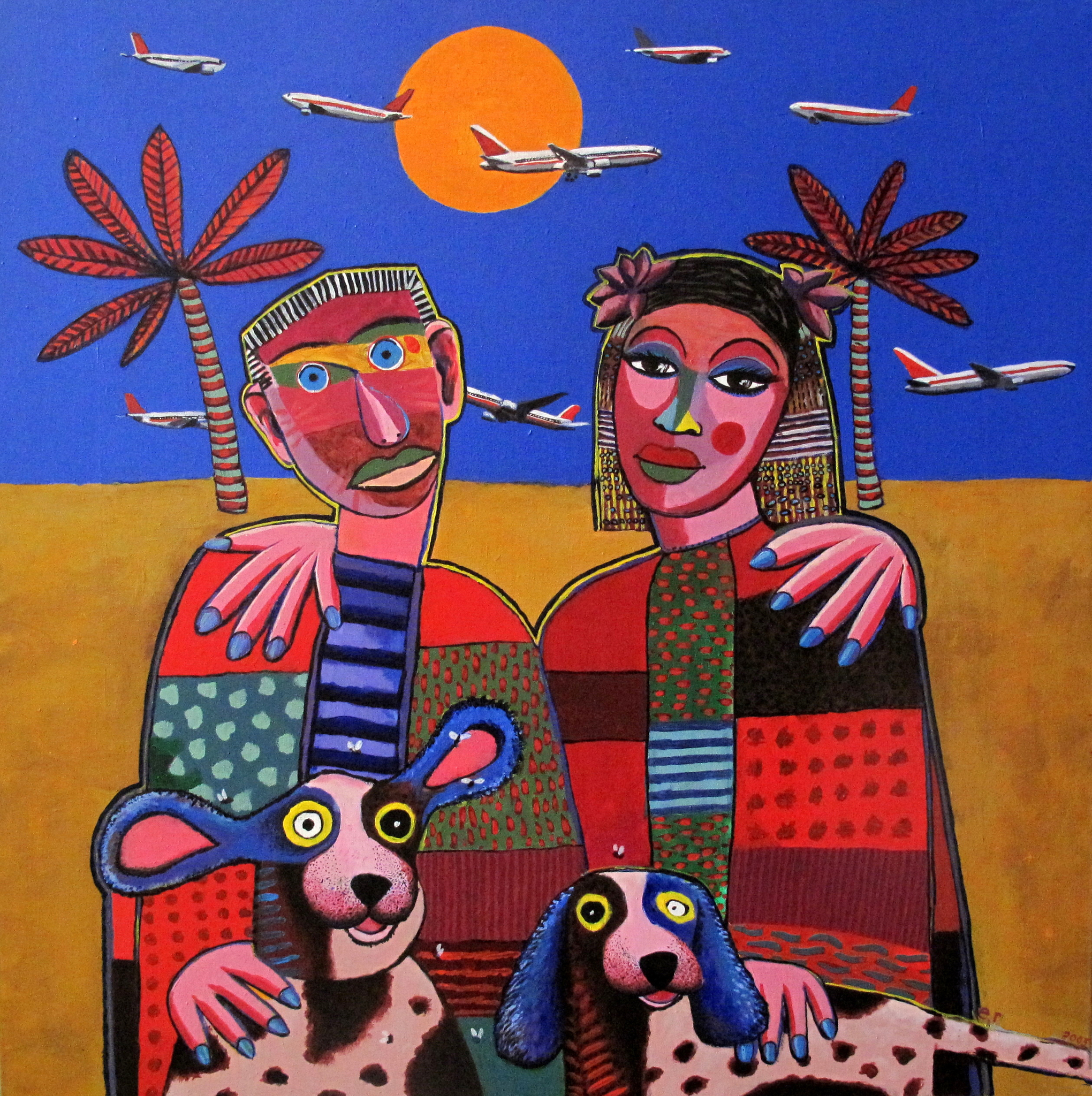 Vliegen Echtpaar Vliegtuigen Vliegvakantie Woestijn Honden Palmbomen
