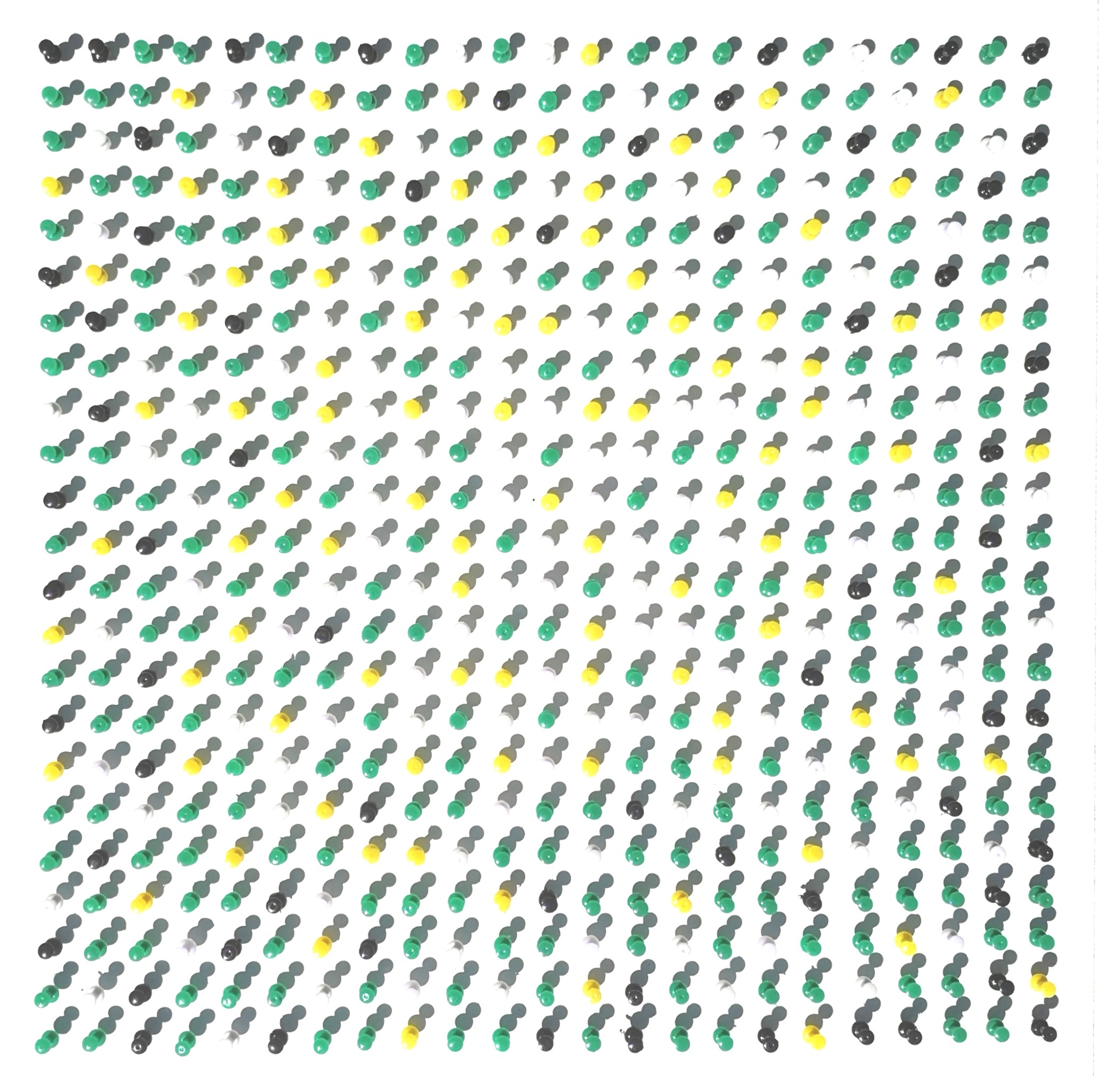 Dit werk behoort tot de 'Pushpin _serie', een reeks van optische werken. Gekleurde pushpins op een witte ondergrond. Door het gebruik van pushpins wordt een prachtig optisch effect bereikt door de weerspiegeling van het materiaal en het effect van licht en schaduw.