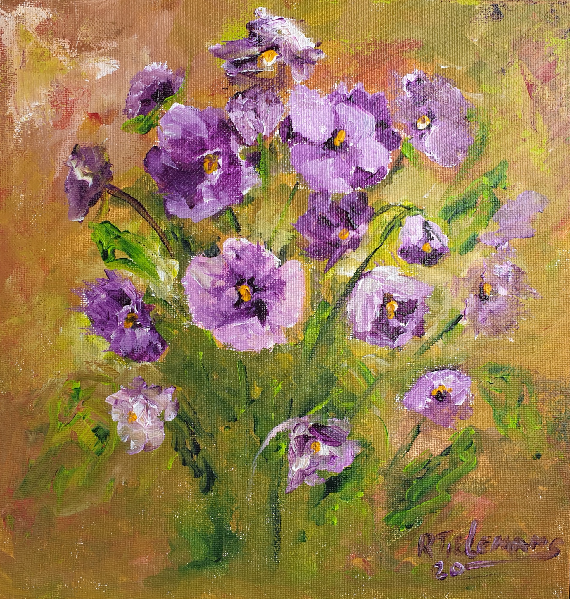 Geel Paars Groen Canvas Doek Natuur Bloem Plant Acrylverfschilderij Decoratief Viooltjes