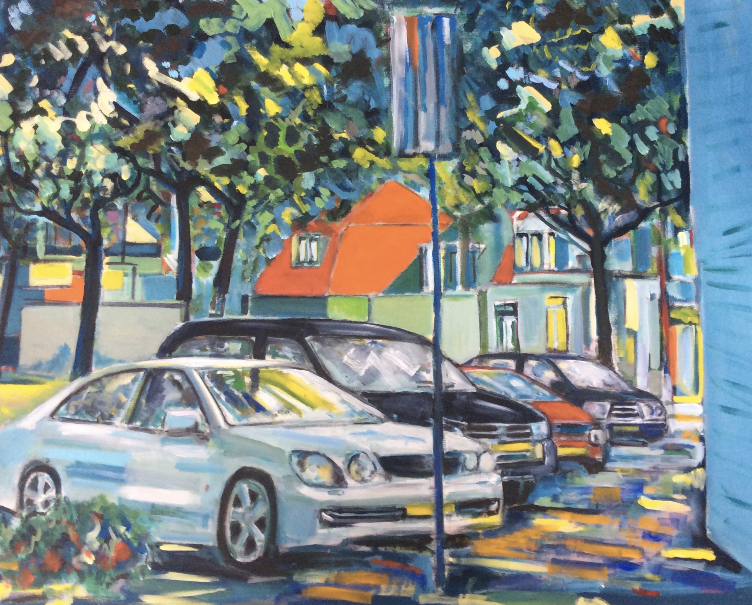 Marcel laat in zijn recente werk de andere weg zien die hij is ingeslagen. ,,In tegenstelling tot mijn eerdere werk, dat heel dicht bij de realiteit lag, vertaal ik nu wat ik waarneem naar mijn eigen werkelijkheid. Het is eigenlijk een vereenvoudigen van die realiteit, tot wat voor mij de essentie is. In die zoektocht spelen kleur en compositie een hoofdrol’.