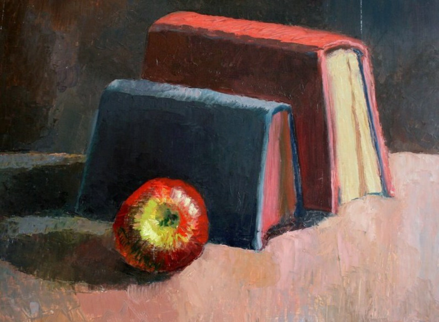 Stilleven boeken met appel
