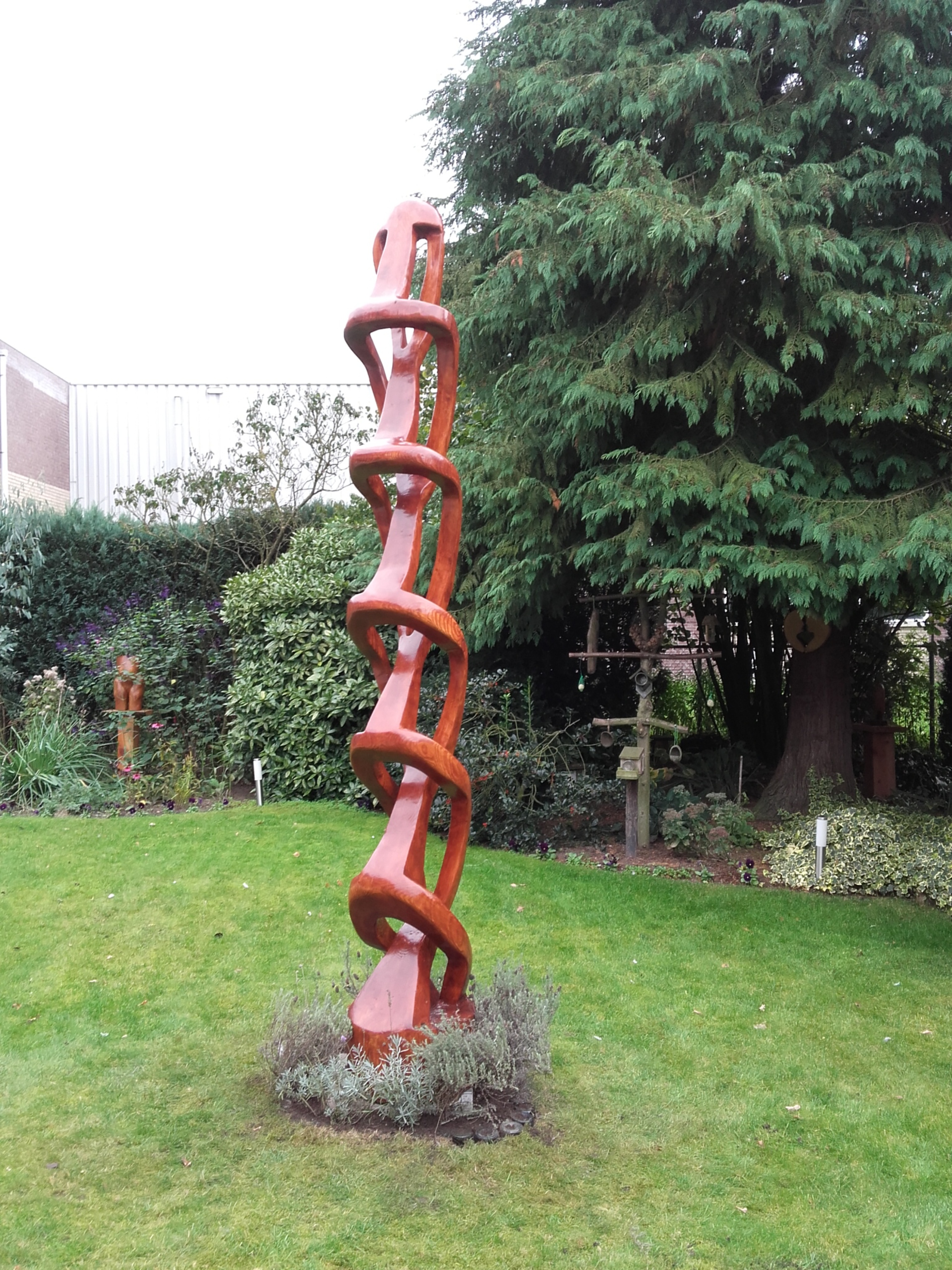 Deze douglas stam waar ik 10 maanden aan bezig ben geweest heeft alleen maar in de weg gelegen Je moet er wel iets voor overhebben In een eerste opwelling heb ik hem Blozwetra genoemd [ Bloed - Zweet - Tranen ] maar ik ben daar toch op terug gekomen Zie werk in uitvoering nr 2 voor het gehele verloop van de volgende werkzaamheden - Zaagwerk - Hakwerk - Raspen - 4 verschillende korrels schuren - 4 beits lagen Te zien 6 acrobaten !!!!! Maar dan staat er wel iets !!!!!!!! Met onderstaande link kan U een filmpje zien dat Herman Wansink heeft gemaakt van boom tot kunstwerk via You Tube https://www.youtube.com/watch?v=KA7NPyAfiWs&feature=youtu.be