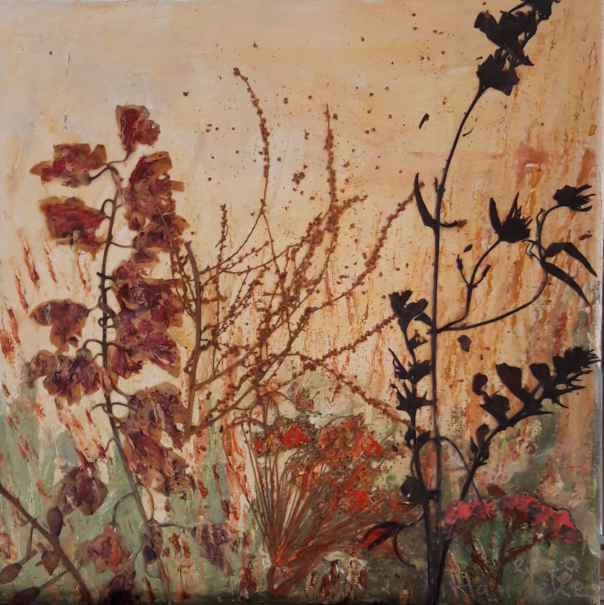 Acryl Groen Bloemen Liefde Canvas Natuur Collage Droogbloemen