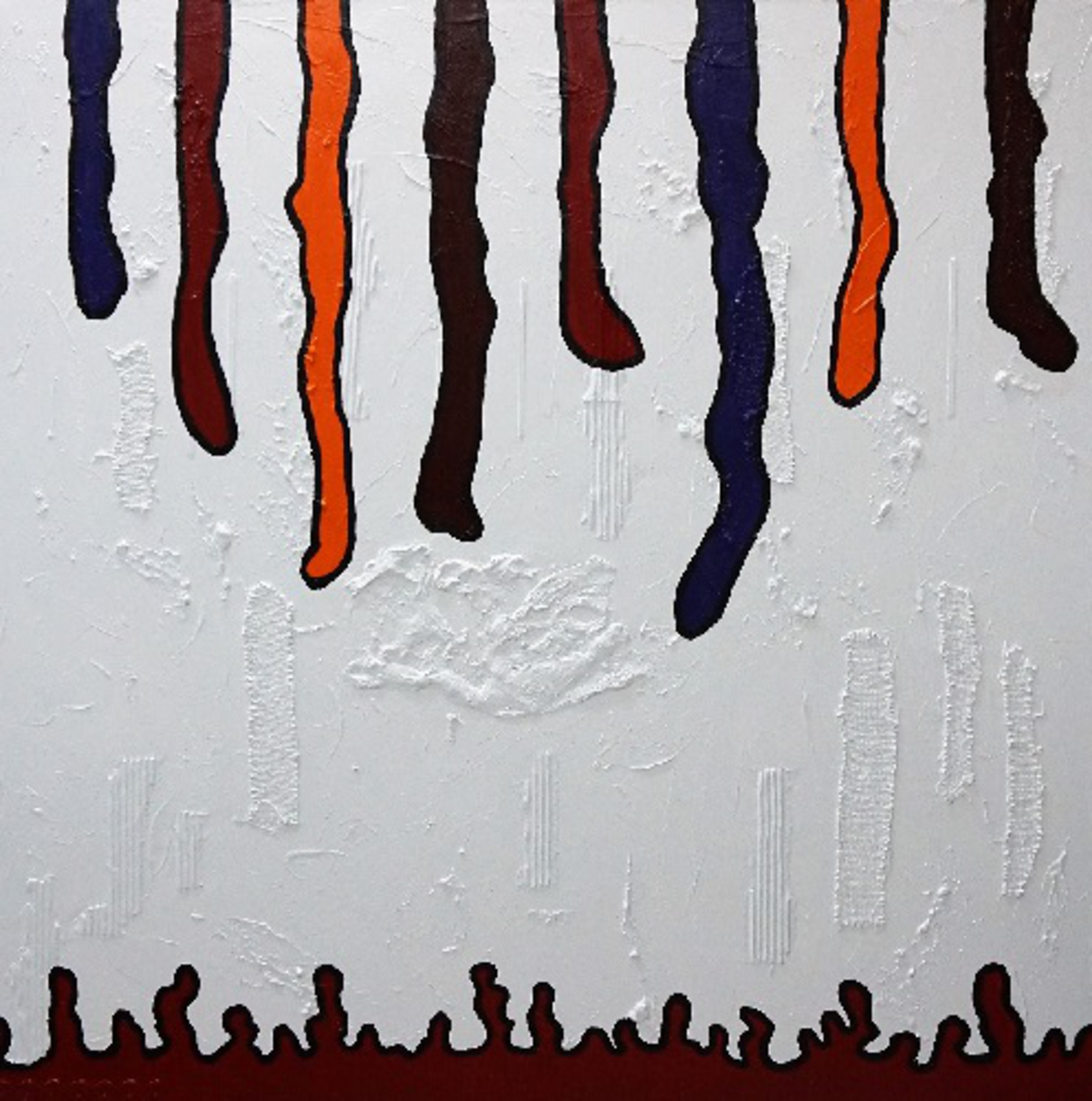 Abstract schilderij: Kronkels. Allerlei materiaal verwerkt in acrylverf. Extra dik doek van 100 x 100 cm. De zijkanten zijn meegeschilderd en het doek is voorzien van een ophang systeem, dus kan gelijk aan de muur, mooi makkelijk.