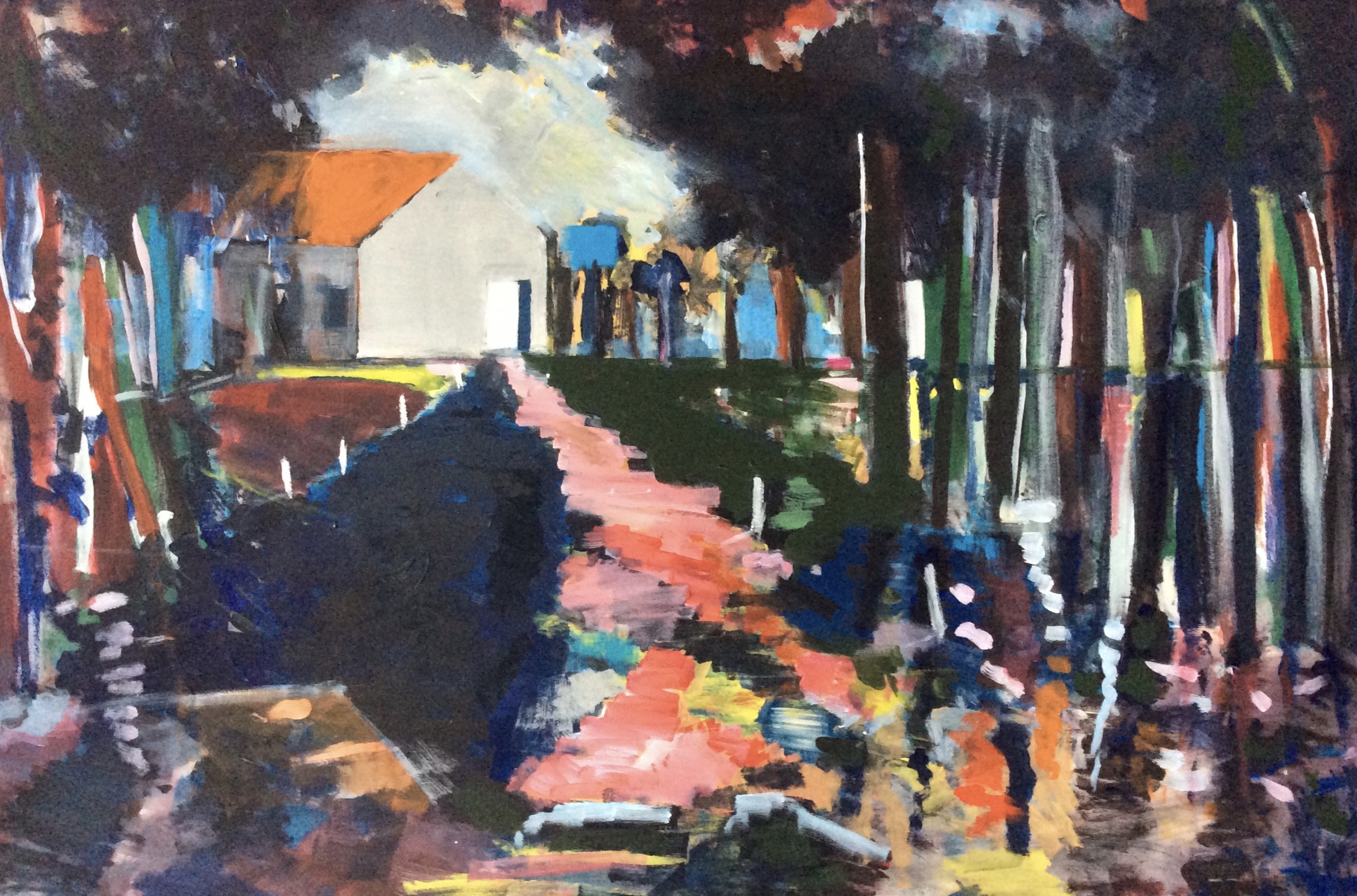 Marcel laat in zijn recente werk de andere weg zien die hij is ingeslagen. ,,In tegenstelling tot mijn eerdere werk, dat heel dicht bij de realiteit lag, vertaal ik nu wat ik waarneem naar mijn eigen werkelijkheid. Het is eigenlijk een vereenvoudigen van die realiteit, tot wat voor mij de essentie is. In die zoektocht spelen kleur en compositie een hoofdrol’.