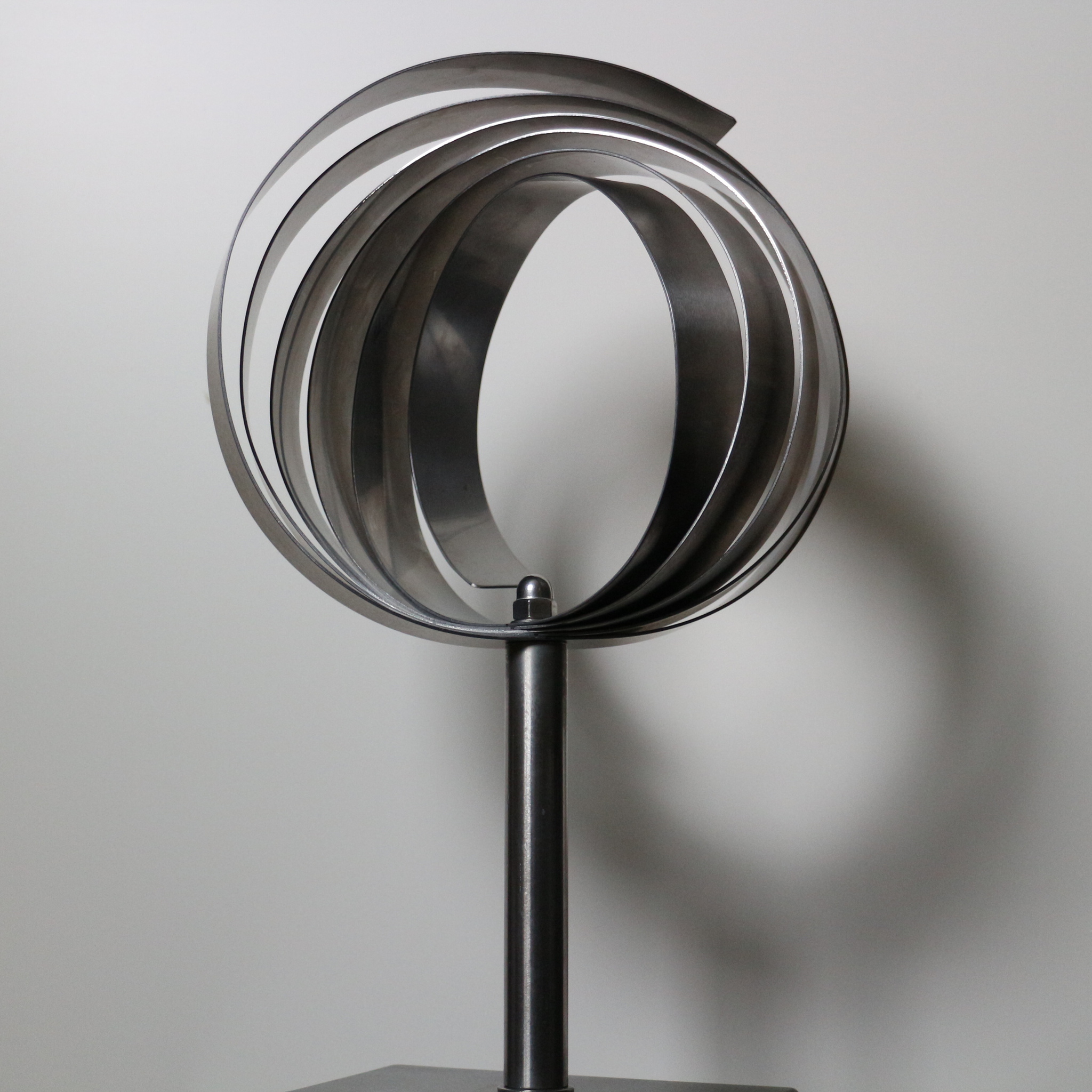 Het sculptuur is gemaakt uit 1 strip RVS van 3 meter lengte. Zoals een lijn oneindig is, is ook deze cirkel oneindig. Soms lopen we in cirkels rond die constant overgaan in grotere of kleinere cirkels. Daar uitkomen is een hele opgave, loslaten is een eventuele optie.