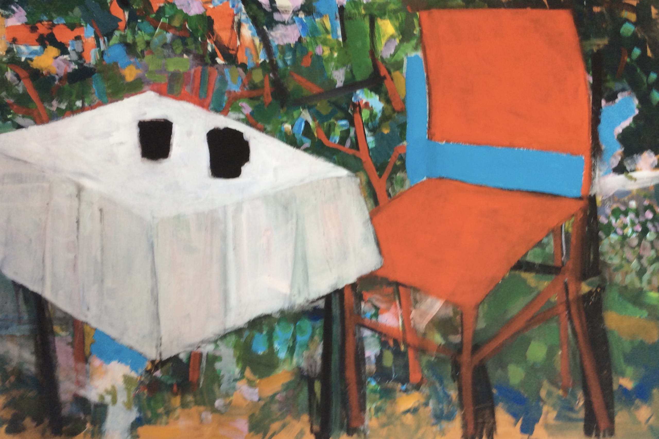 Marcel laat in zijn recente werk de andere weg zien die hij is ingeslagen. ,,In tegenstelling tot mijn eerdere werk, dat heel dicht bij de realiteit lag, vertaal ik nu wat ik waarneem naar mijn eigen werkelijkheid. Het is eigenlijk een vereenvoudigen van die realiteit, tot wat voor mij de essentie is. In die zoektocht spelen kleur en compositie een hoofdrol’.