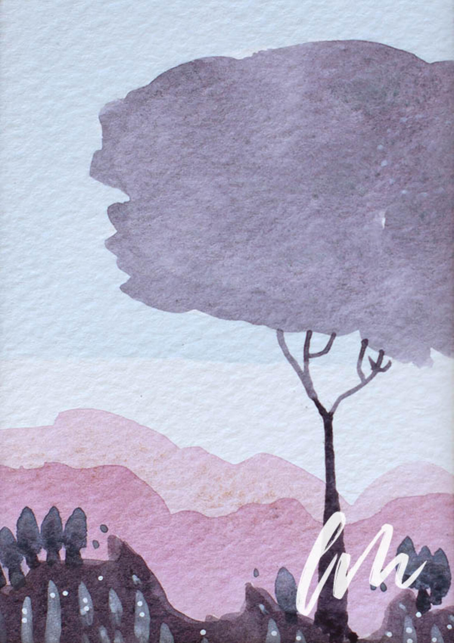Deze aquarel is geschilderd op 300 grams artist aquarelpapier. Het is een uniek kunstwerk, gesigneerd op de achterzijde en heel subtiel op de voorzijde. Inclusief crème wit passe partout dat in een standaard schilderijlijst van 10×15 cm past.