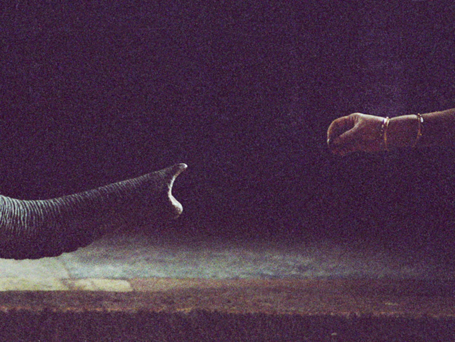 In a South-Indian temple the temple elephant is recieving a coin to give a blessing on the head in return.