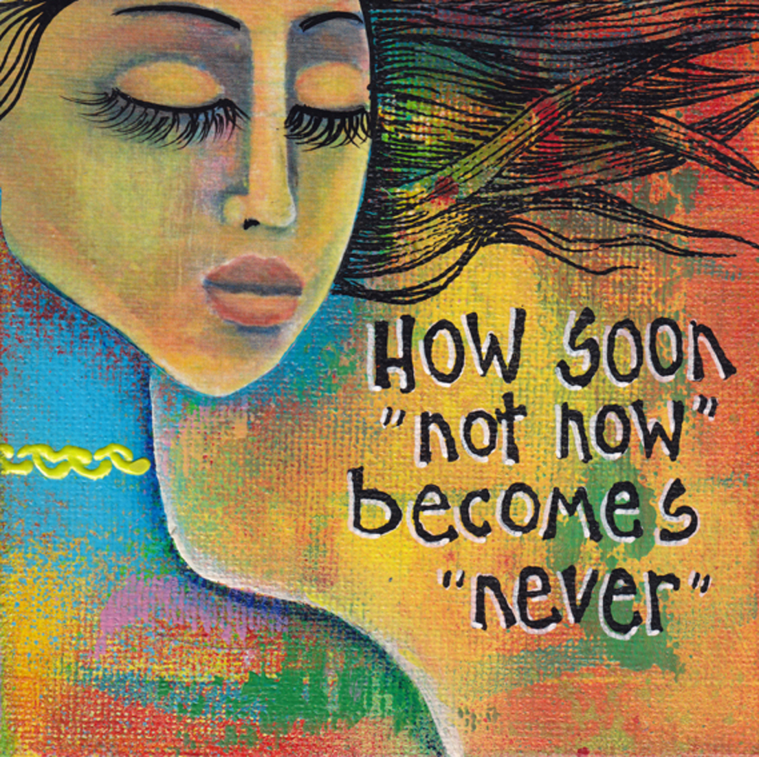 Schilderij Meisje Acryl Vogel Spiritueel Vrouw Klein Gezicht Woman Canvas Figuur Kunst Collage Surreëel Geschenk Intuitief Canvasboard Kleurrijke Spreuk Inspirerend Quote Handmade Kunstcadeau Presents Cadeautjes