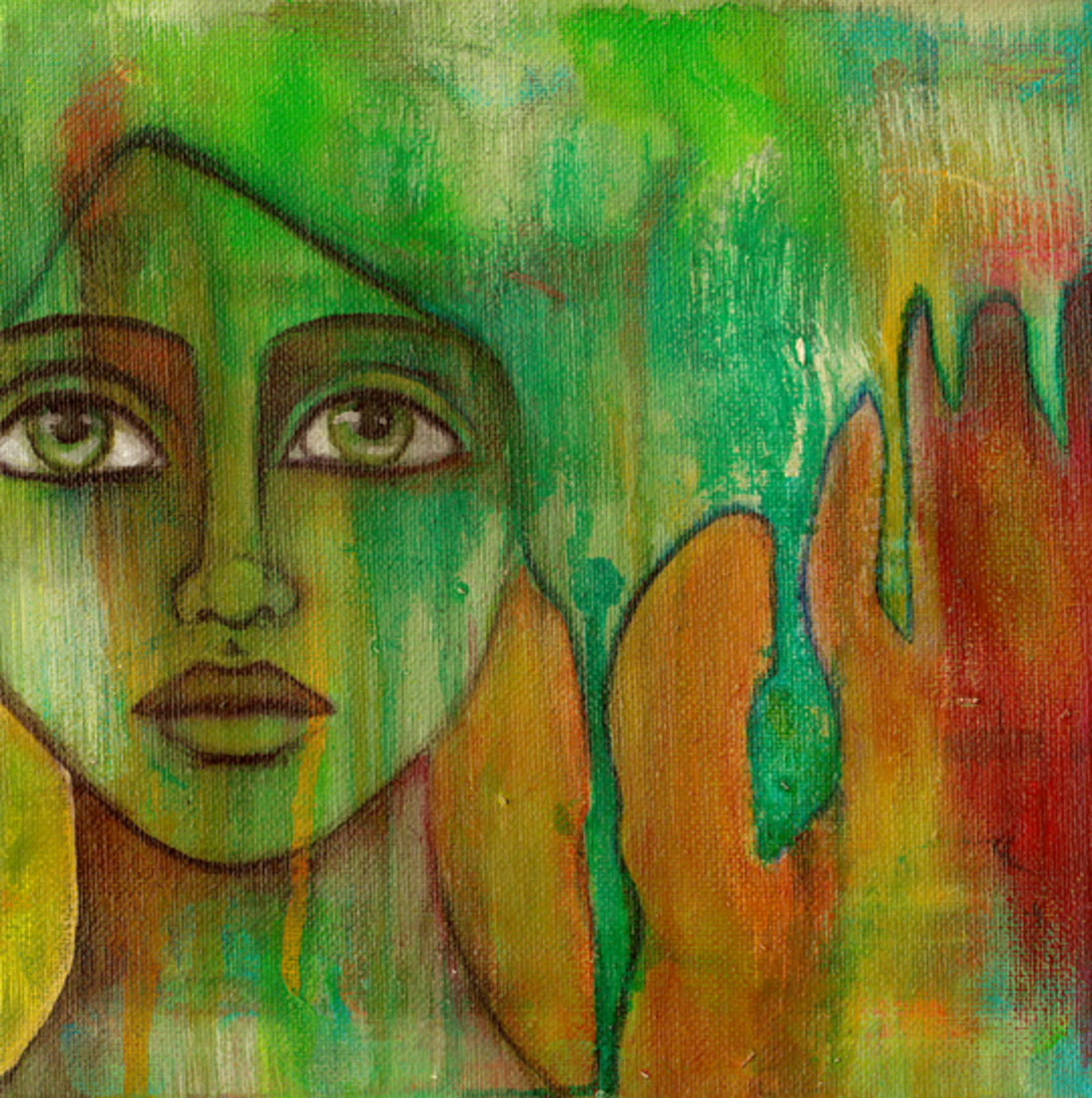 Schilderij Meisje Acryl Vogel Spiritueel Groen Vrouw Klein Canvas Figuur Kunst Surreëel Geschenk Intuitief Kleurrijke Inspirerend Handmade Kunstcadeau Presents Cadeautjes Denthe Minischilderij Dentheart