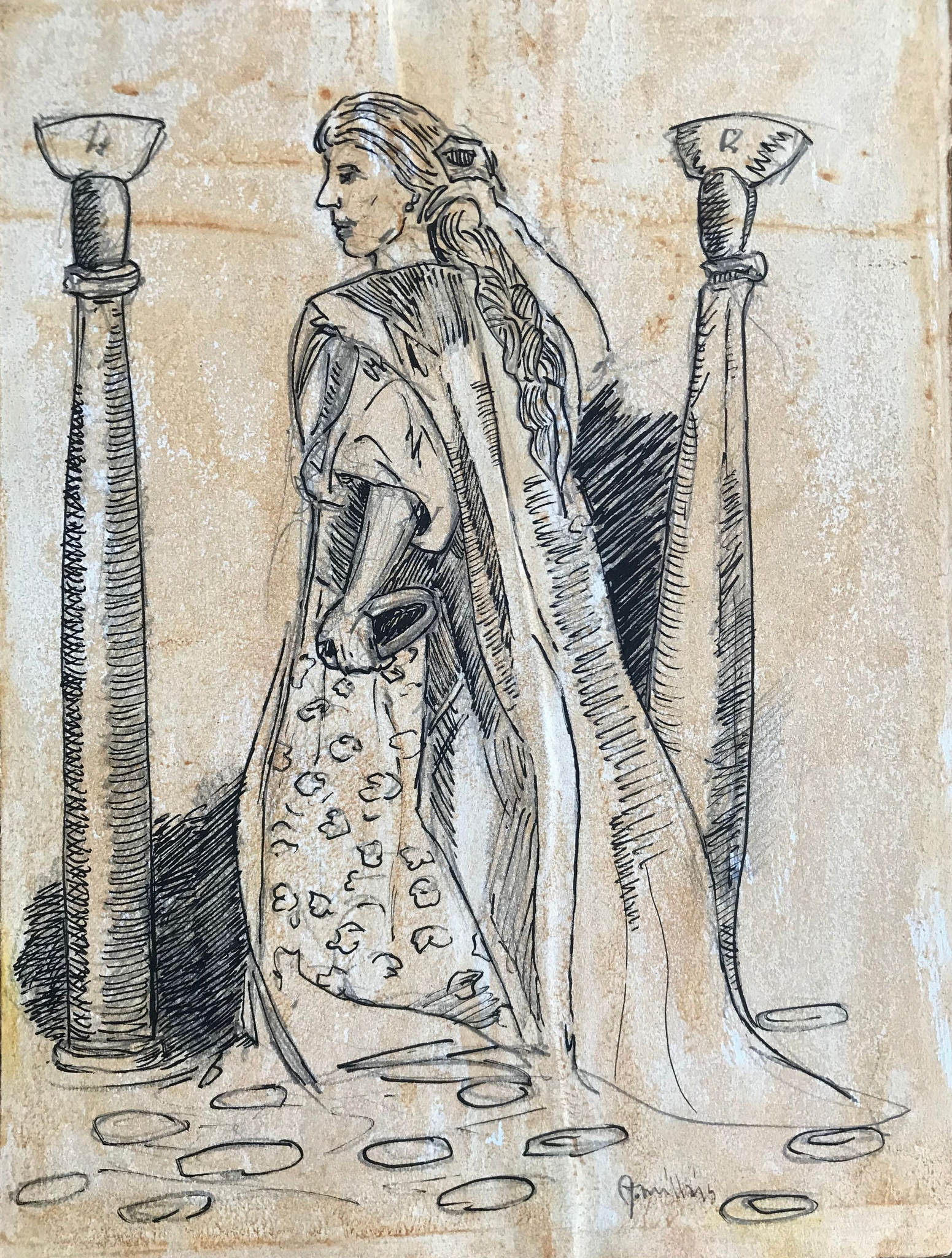 uit serie: JOURNAAL VAN NIET GEBEURDE ZAKEN, pentekeningen op geprepareerd papier, gescheurde randen