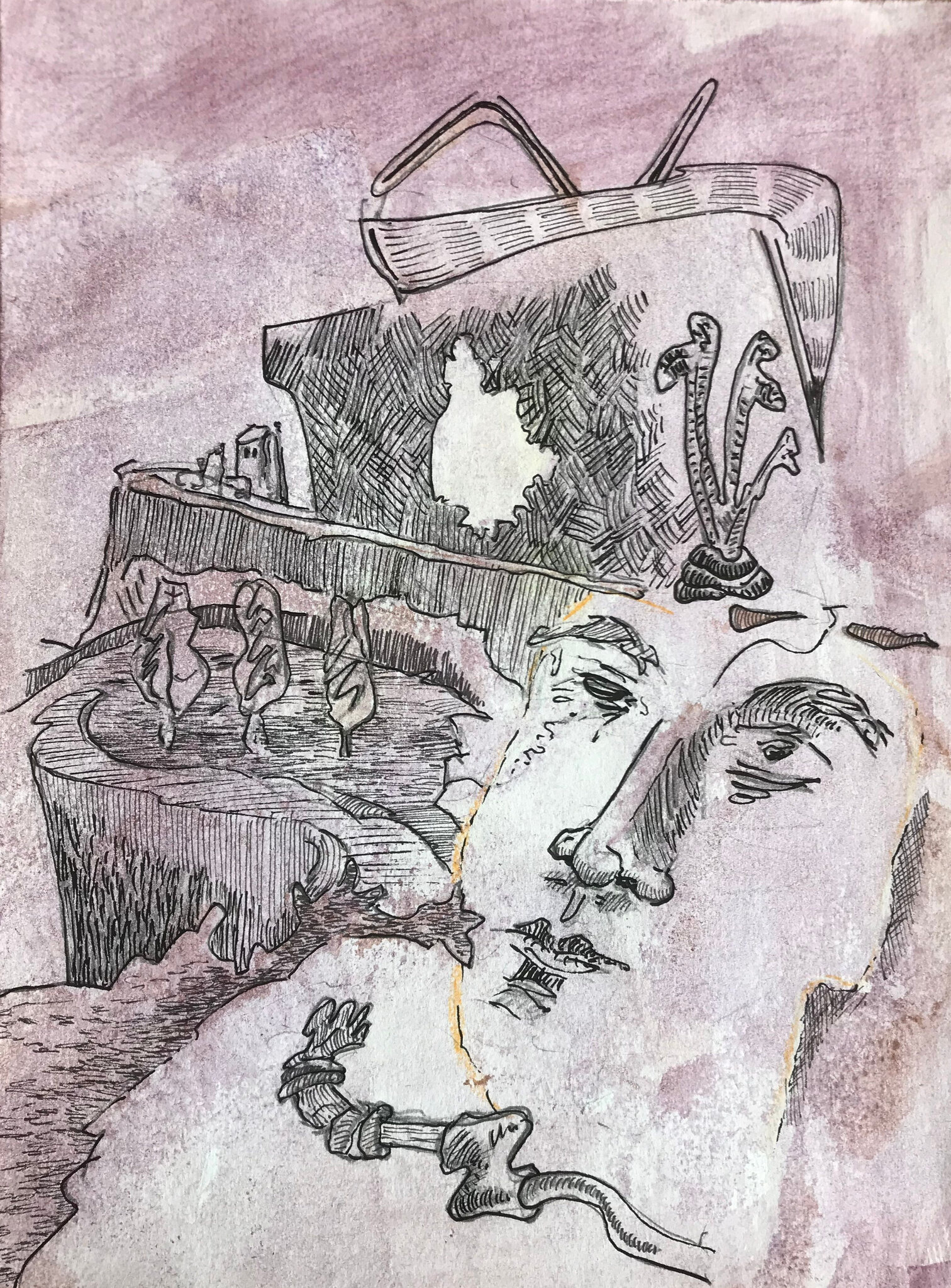 uit serie: JOURNAAL VAN NIET GEBEURDE ZAKEN, pentekeningen op geprepareerd papier, gescheurde randen