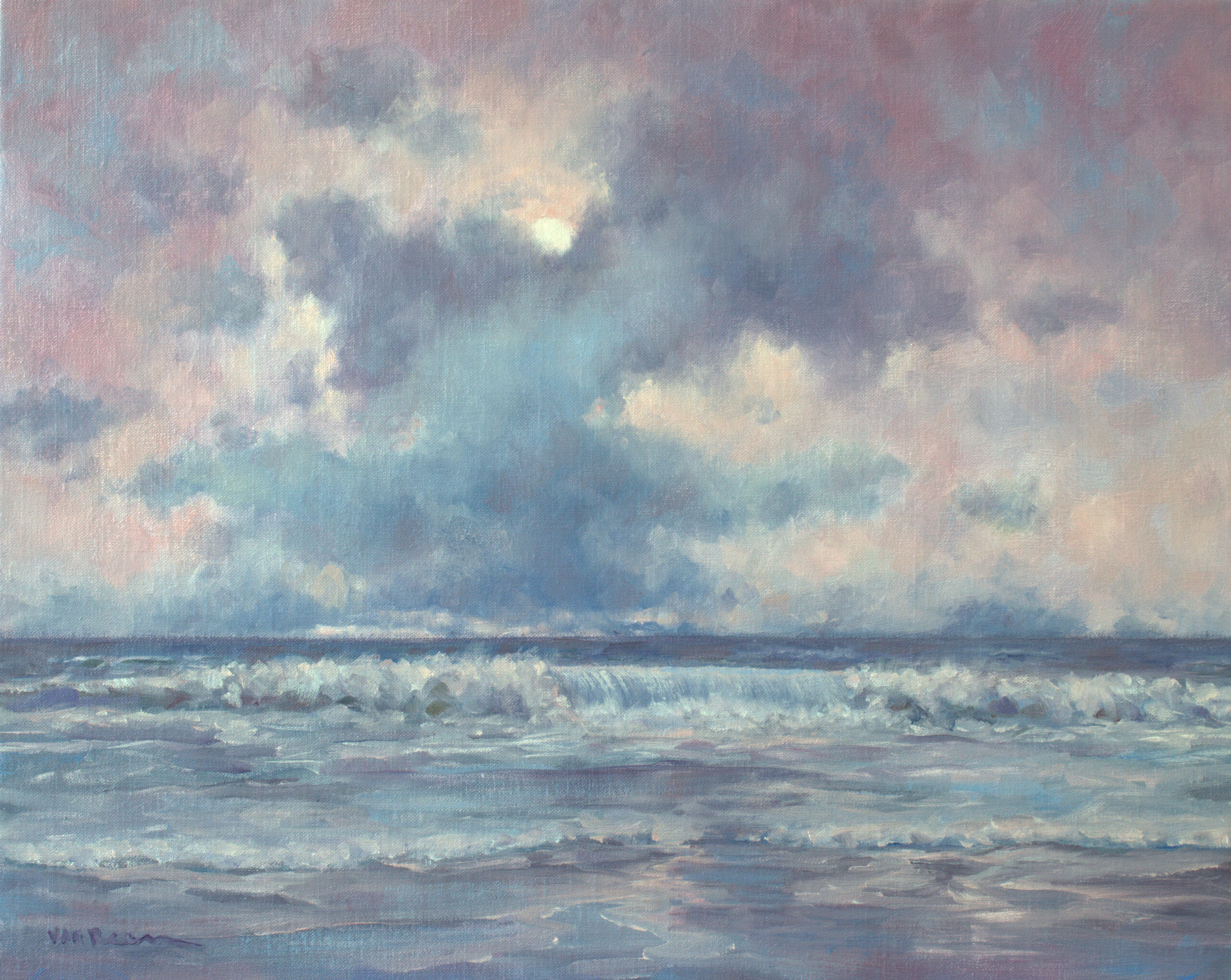 Roeland van Reem schildert met olieverf op linnen of op paneel . Belangrijke thema's zijn; bloemstilleven, strand, zee, sneeuw- en polderlandschap.