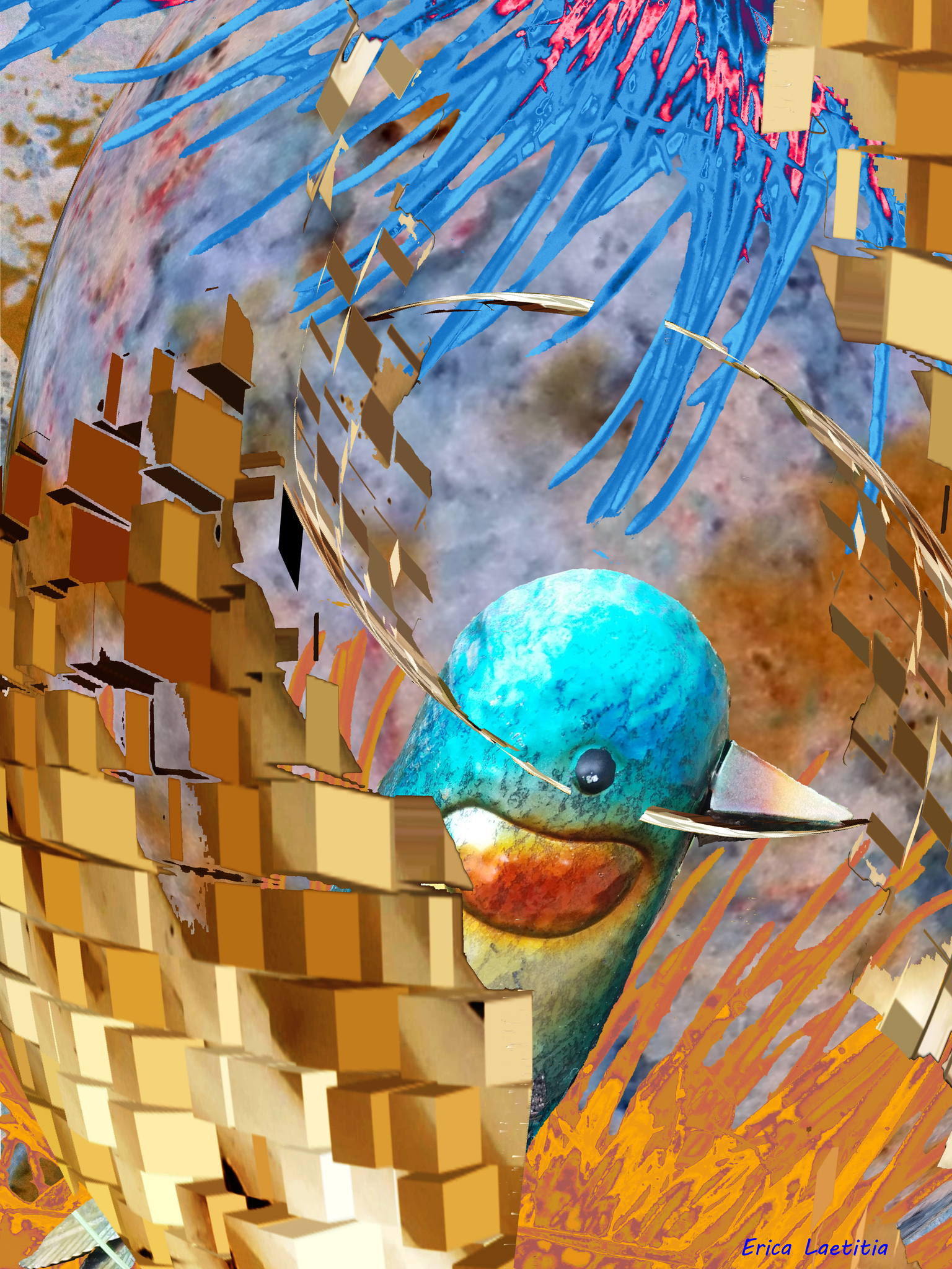 Dit zelfportret is een goede representant van mijn aluprints: diverse digitaal bewerkte foto-elementen die samen één verhaal vertellen, met of zonder gedicht.