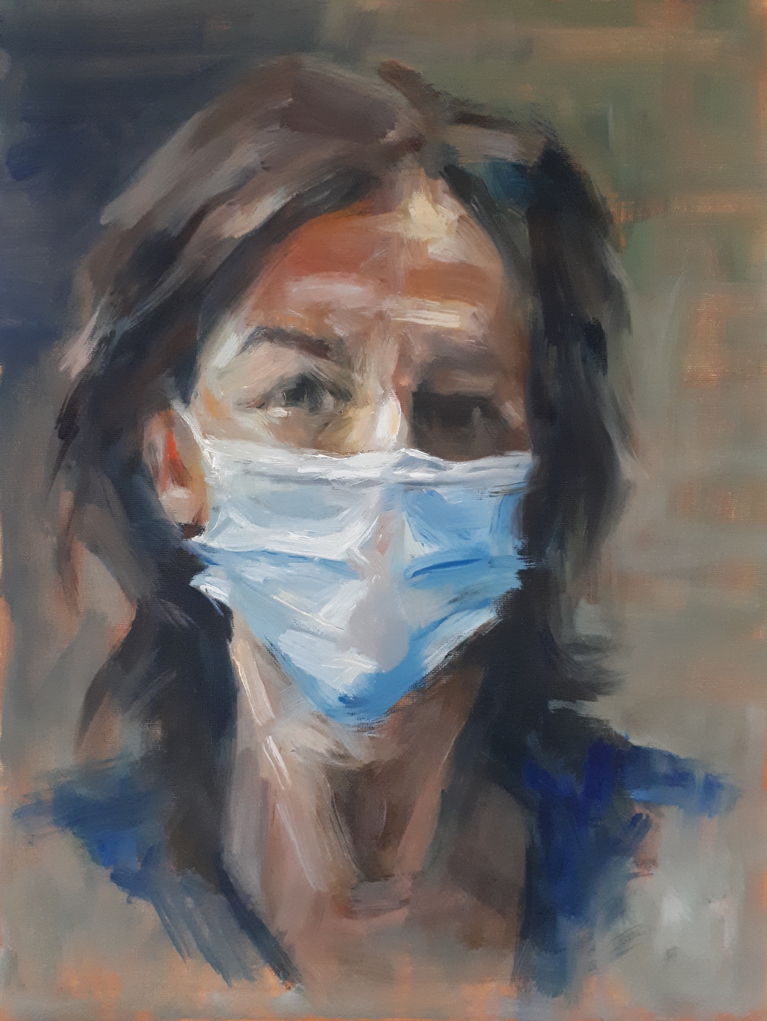 Zelfportret gemaakt n.a.v. mijn partime baan in de zorg tijdens pandamic 2020.