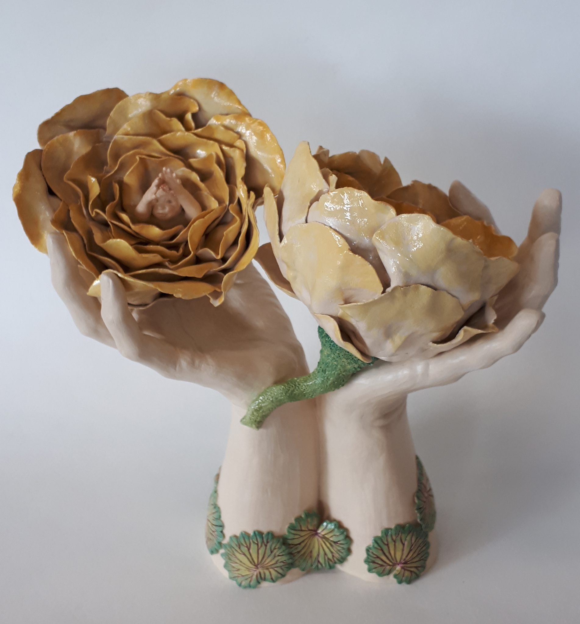 Saskia Van Aubel maakt keramische werkstukken, schilderijen, tekeningen en bloemobjecten van textiel.