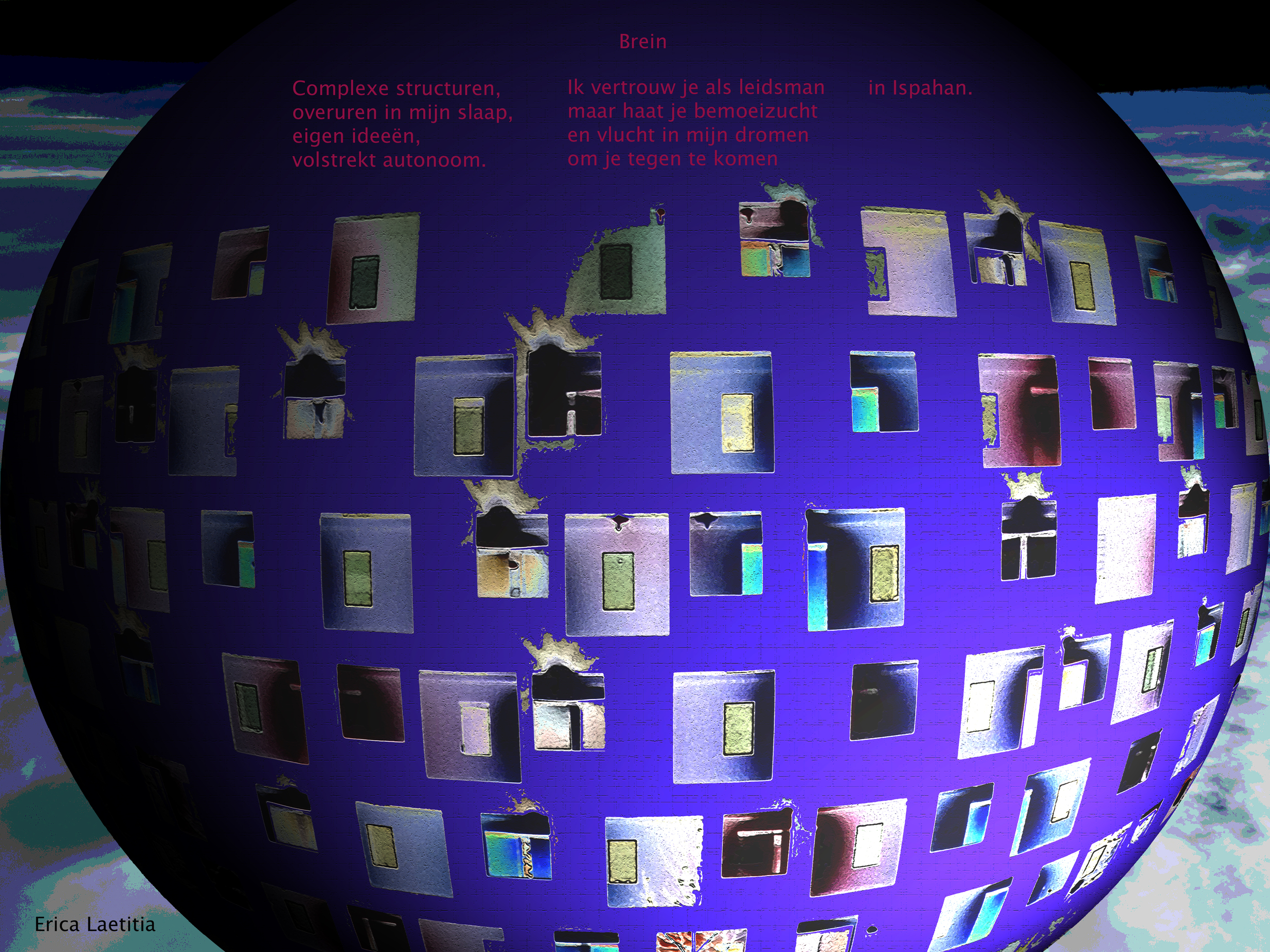 Blauw Paars Bol Surreëel Ramen Gebouw Kleurvlakken Brein