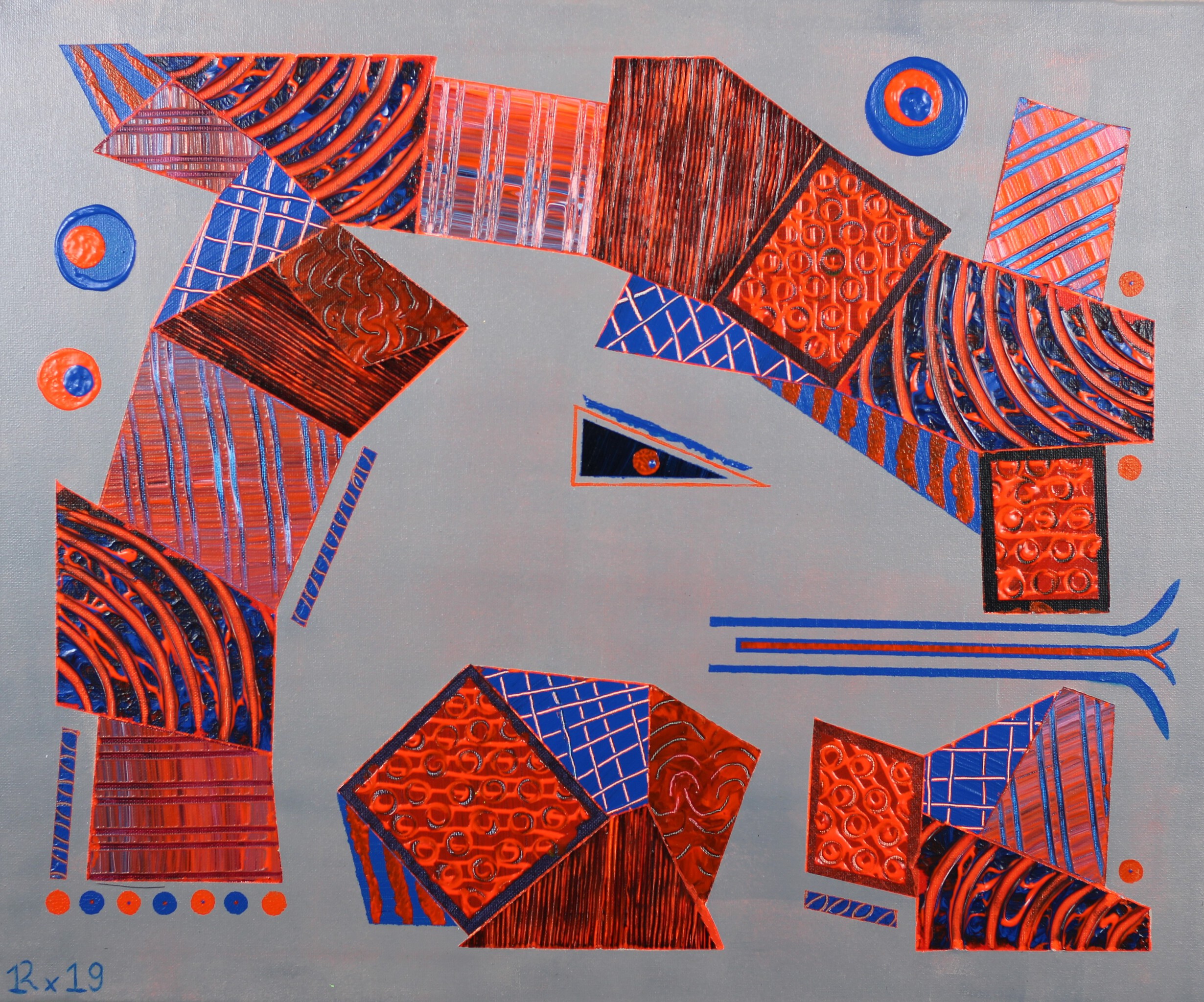 René Roovers In 1975 geboren te Nuland, provincie Brabant. Roovers is autodidact en laat zich zo min mogelijk beïnvloeden door andere kunstenaars. Dit om zo vrij mogelijk te kunnen werken. In zijn geometrisch geïnspireerde abstracte en half-abstracte schilderstukken probeert hij extra accenten aan te brengen door met reliëf te werken. Vormen, kleuren en contrasten fascineren hem. Zijn manier van werken: Het laag voor laag aanbrengen van "puzzelstukken" die moeten leiden naar een bevredigend eindresultaat. Zijn doel is: Het vasthouden van de aandacht en het op zoek gaan naar de intentie van het kunstwerk. Kunst zien heb ik van mijn vader. Kunst maken van mijn moeder.