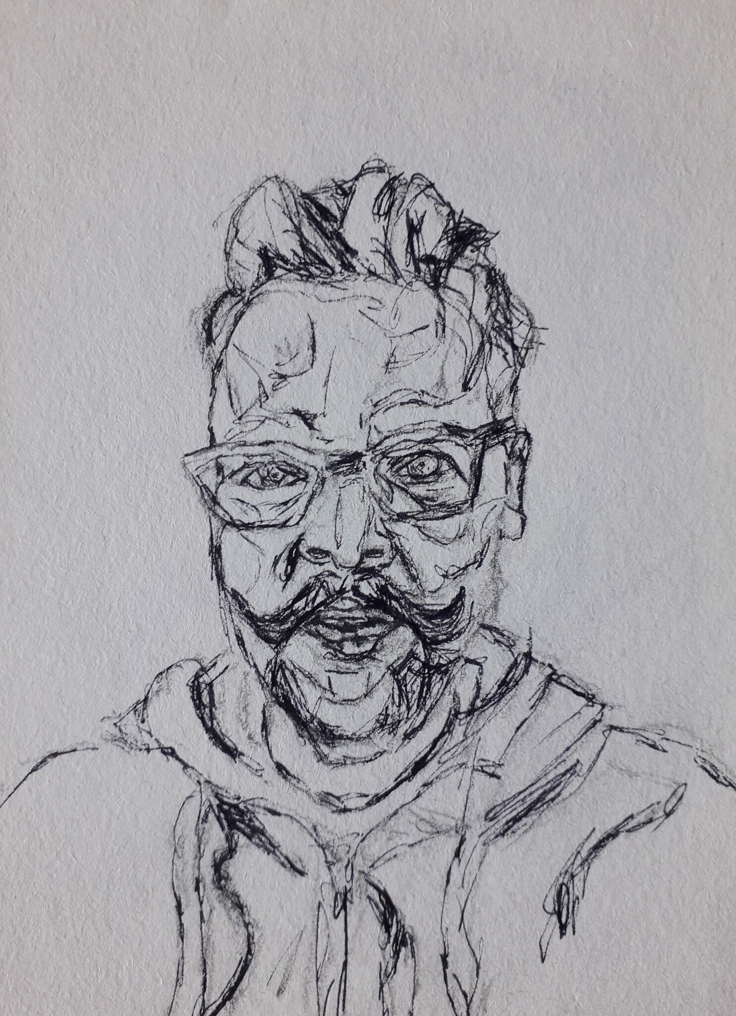 Man Old Jonge Snor School Pentekening Selfie