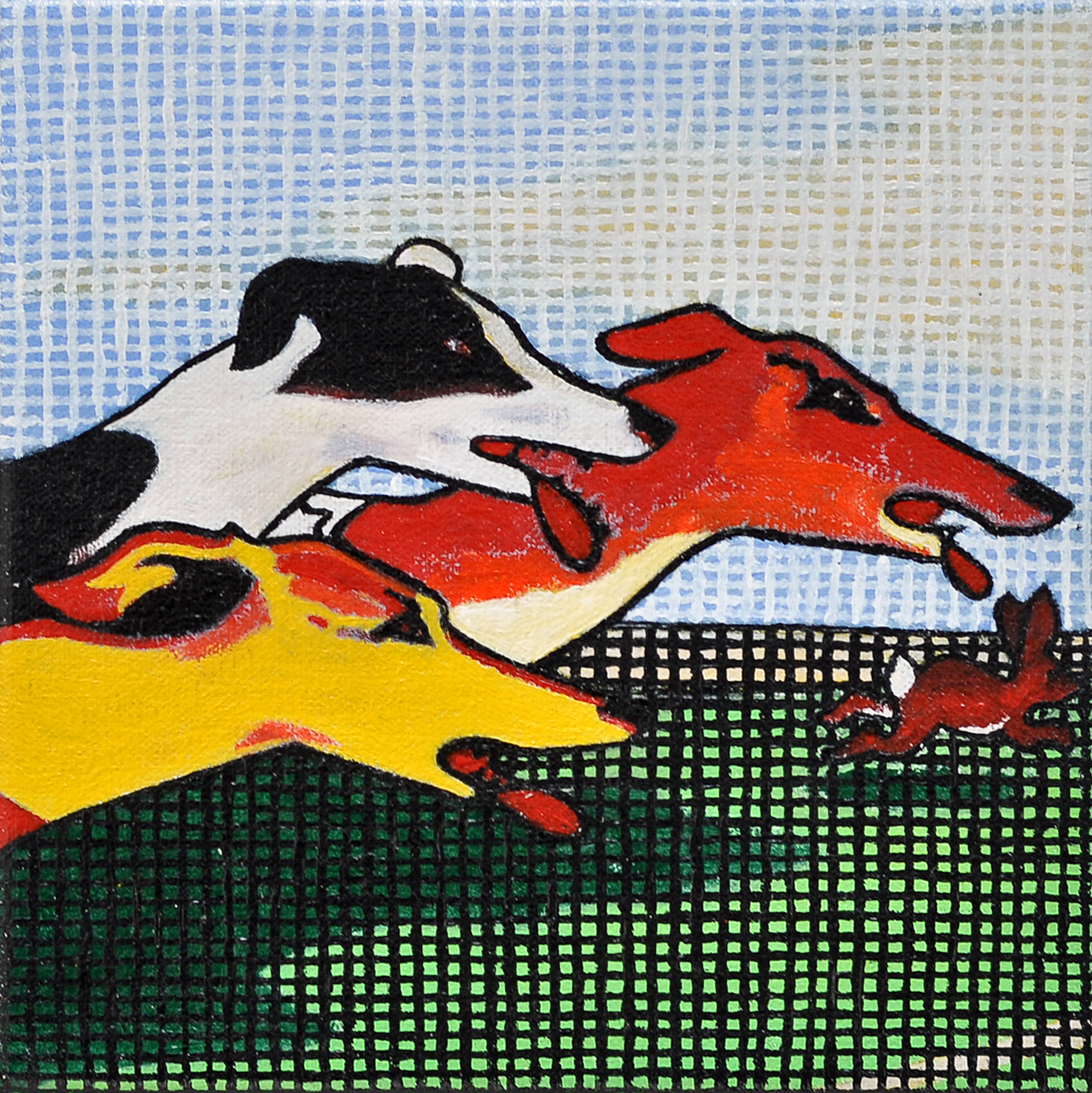 Wit Rood Oranje Geel Zwart Blauw Groen Bruin Honden Vierkant Hond Drie Surreëel Beeldspraak Heet Windhond Greyhound Rennen Windhonden Haas Beeldtaal Greyhounds